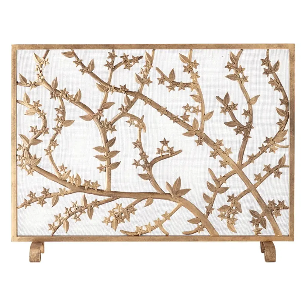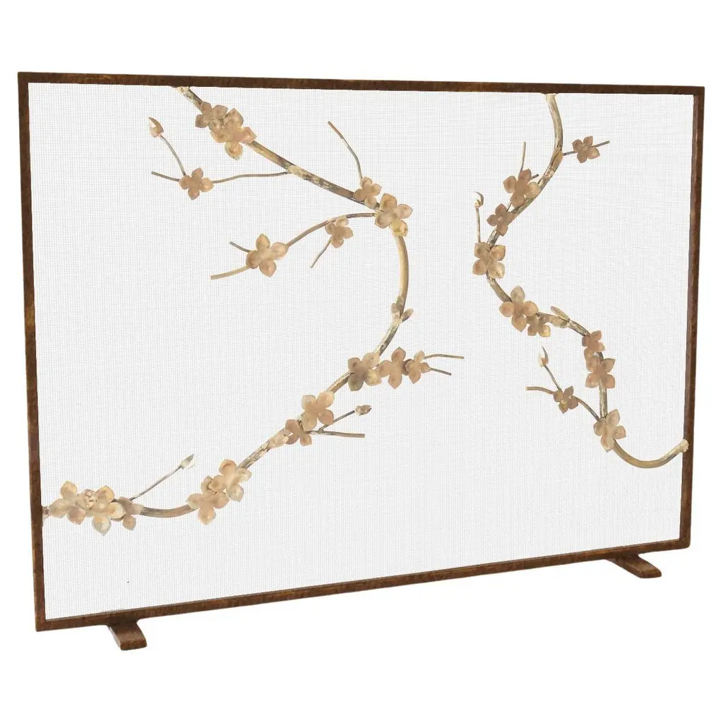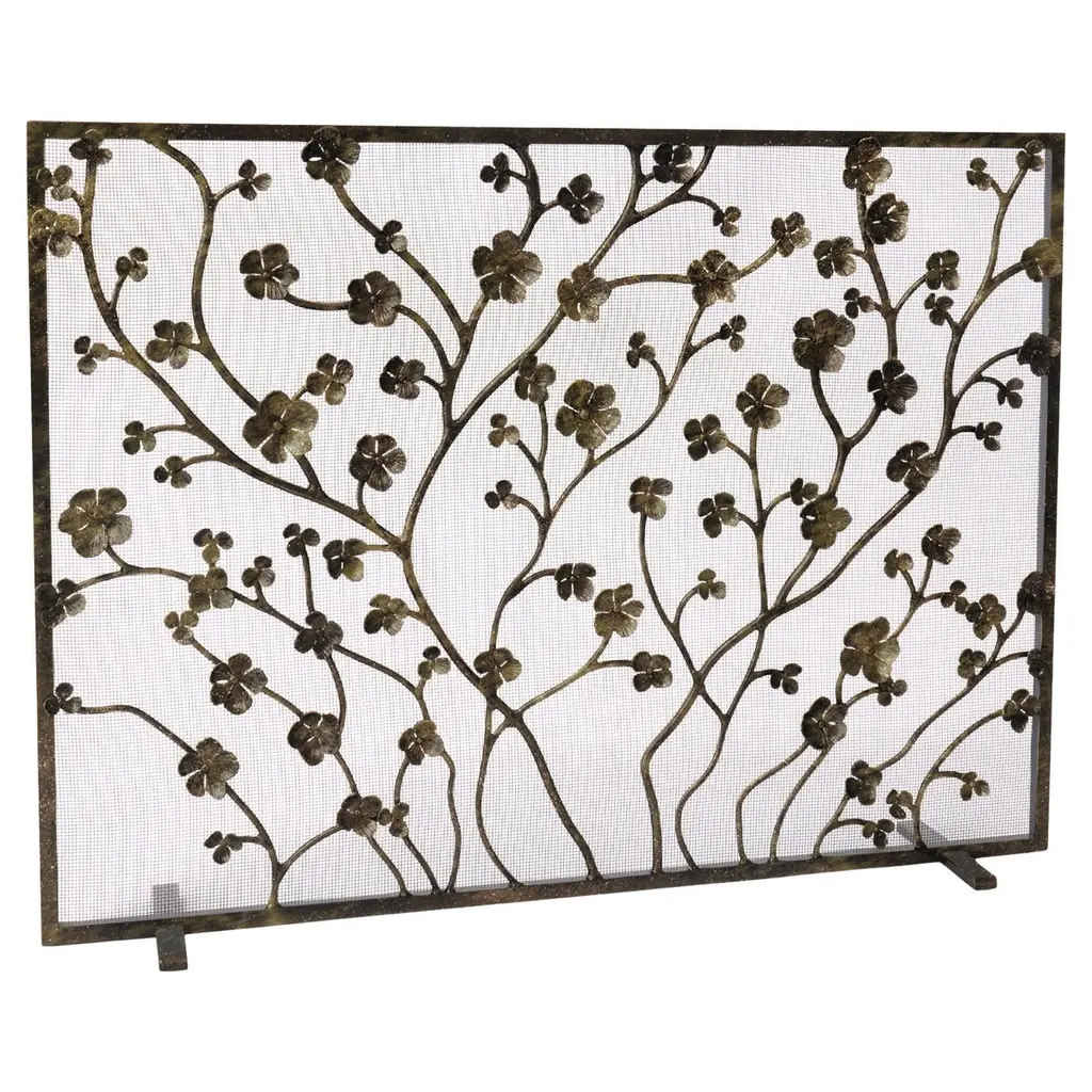 Plum Blossom Fireplace Screen In Tobacco