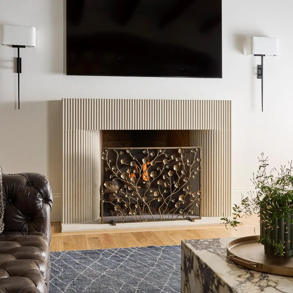 The Primrose Garden Fireplace Screen brings the beauty of a blooming garden indoors, capturing the essence of nature in a sophisticated, timeless design. Each element of this bespoke, handcrafted screen—every petal and stem—is meticulously shaped, textured, and finished by skilled artisans, reflecting the unique forms found in a garden at its peak. The intricate floral motif, inspired by the delicate primrose blossom, adds life to your fireplace while maintaining a refined elegance. This screen is a testament to the dedication to detail and the artistry that defines Claire Crowe Collection's approach to organic metalwork.Made in the United States by expert craftsmen, our screens are designed to fit seamlessly in with any setting. Each piece is unique, with slight variations, due to the artisan nature of our hand-applied finishing process. Handmade in the U.S.A., it ships in 6-8 weeks.