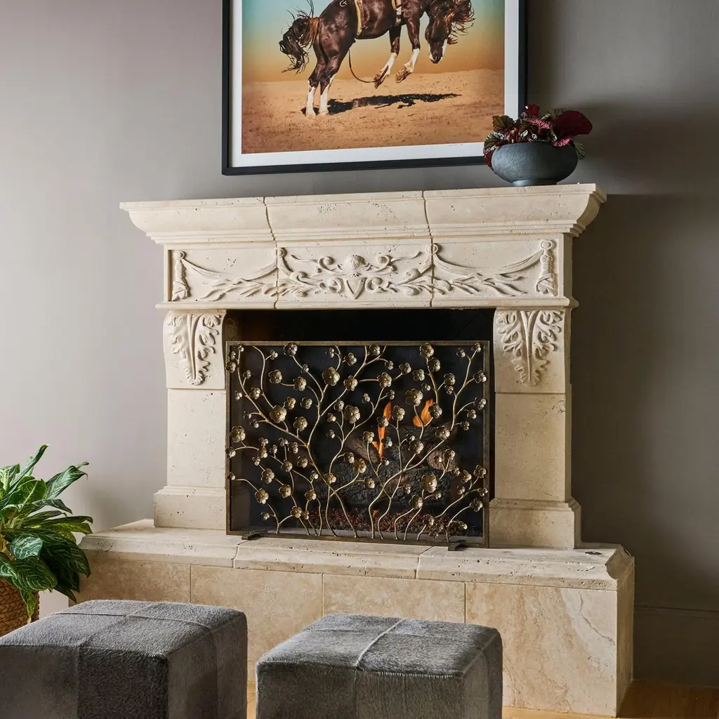 The Primrose Garden Fireplace Screen brings the beauty of a blooming garden indoors, capturing the essence of nature in a sophisticated, timeless design. Each element of this bespoke, handcrafted screen—every petal and stem—is meticulously shaped, textured, and finished by skilled artisans, reflecting the unique forms found in a garden at its peak. The intricate floral motif, inspired by the delicate primrose blossom, adds life to your fireplace while maintaining a refined elegance. This screen is a testament to the dedication to detail and the artistry that defines Claire Crowe Collection's approach to organic metalwork.Made in the United States by expert craftsmen, our screens are designed to fit seamlessly in with any setting. Each piece is unique, with slight variations, due to the artisan nature of our hand-applied finishing process. Handmade in the U.S.A., it ships in 6-8 weeks.