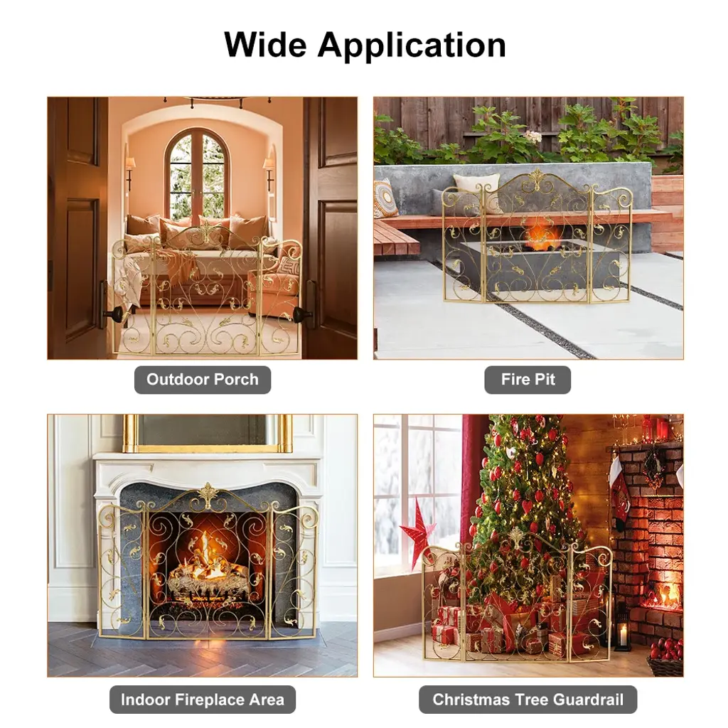 【Beautifully Decorated & Multiple Use】The strong fire cover can prevent the ashes from bouncing. It is suitable for children and indoor pet safety. Also, the fence protector can protect and decorate the Christmas tree on Christmas Day. 【High-Quality】This product is made of premium metal which is very durable and built for long-term use. 【No Assembly & Easy Use】Once you receive the privacy wall, you don't need to install it then you can use it.