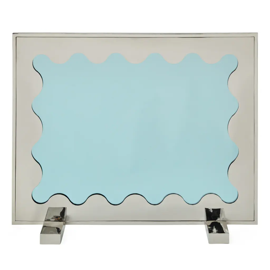 Make Waves. A simple and modern face for your fireplace, our Ripple Fire Screen features icy blue tempered glass framed by our signature wavy border in polished nickel. Designed to stoke style at the flashiest point in the room, our fireplace accessories give your logs a lift and pretty up your place.