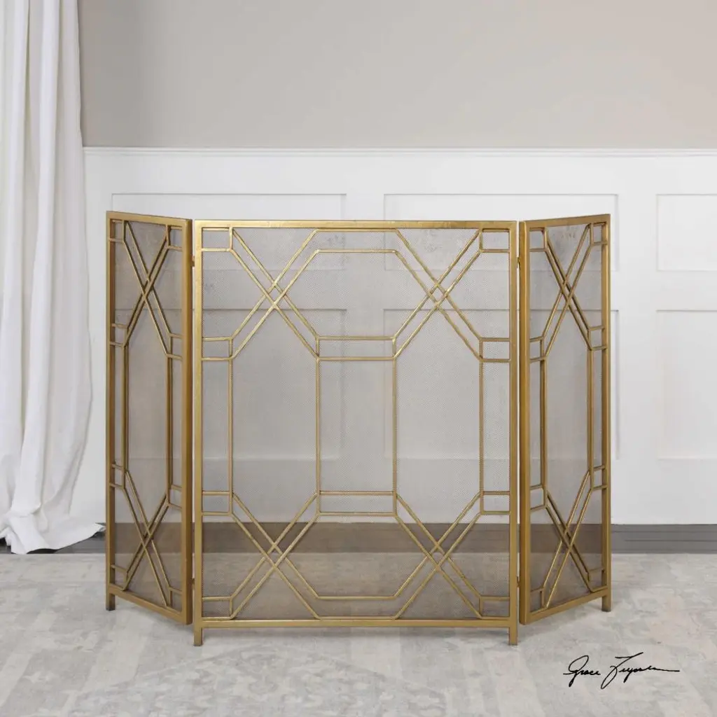 Roxanne Hollywood Regency Gold Pattern Fireplace Screen
