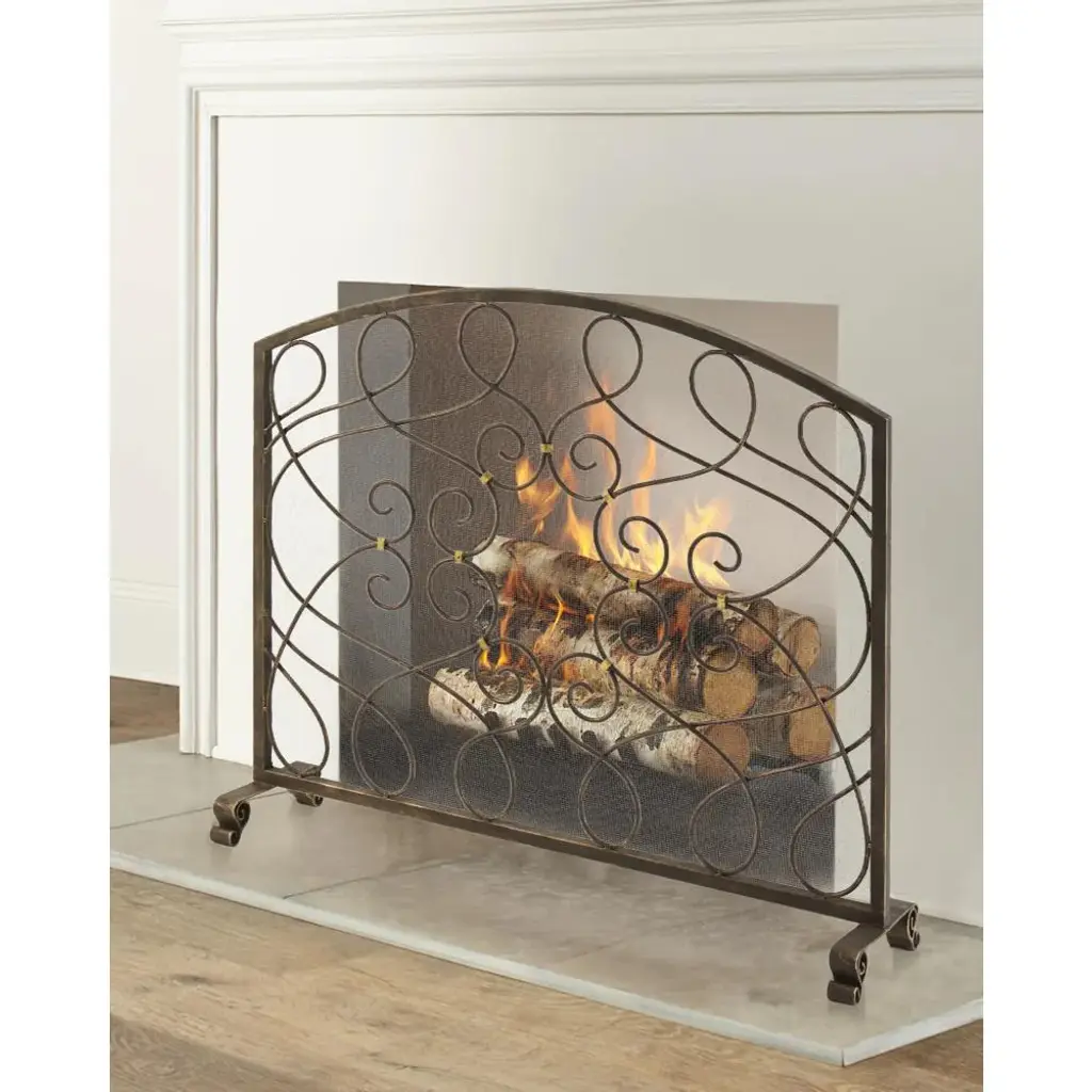 Create a beautiful focal point in a room year-round. This Italian loop-design mesh-backed arched fireplace screen will do just that. The burnished gold finish adds warm appeal.