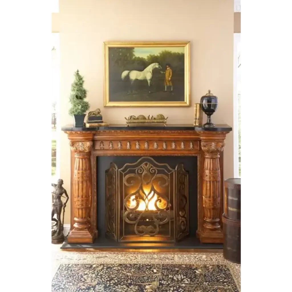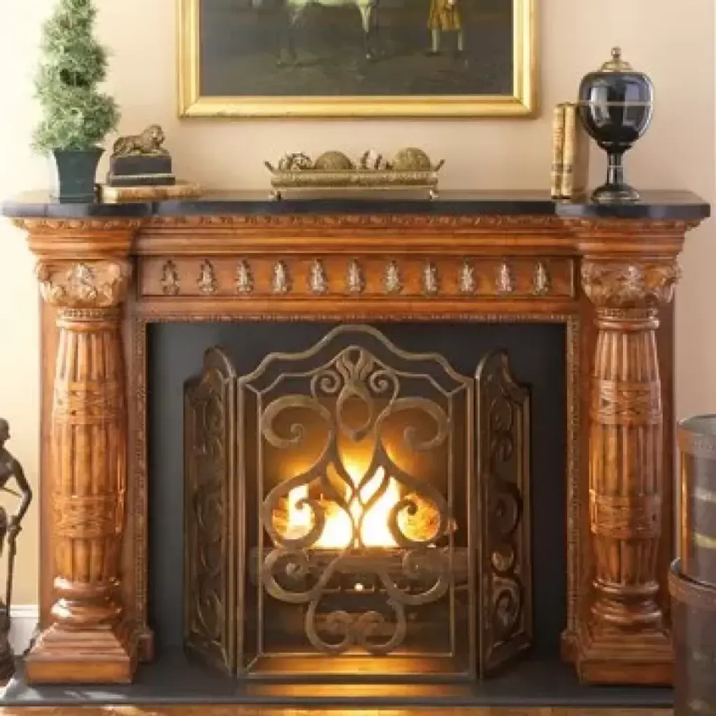 Two-tone wrought iron decorates the Tiger Lily 3-panel fireplace screen like wings of a butterfly. Side panels can be adjusted to fit a variety of fireplace sizes.