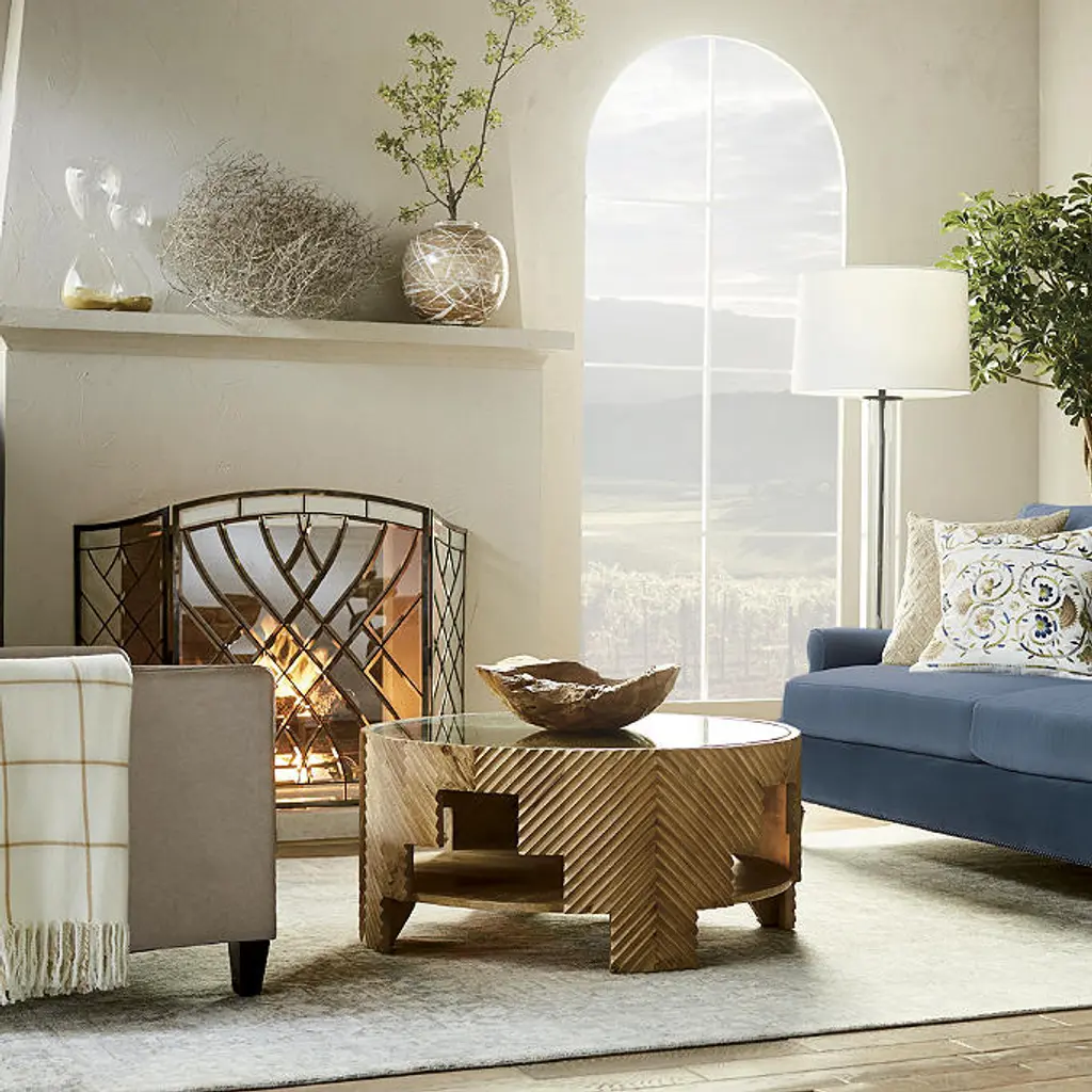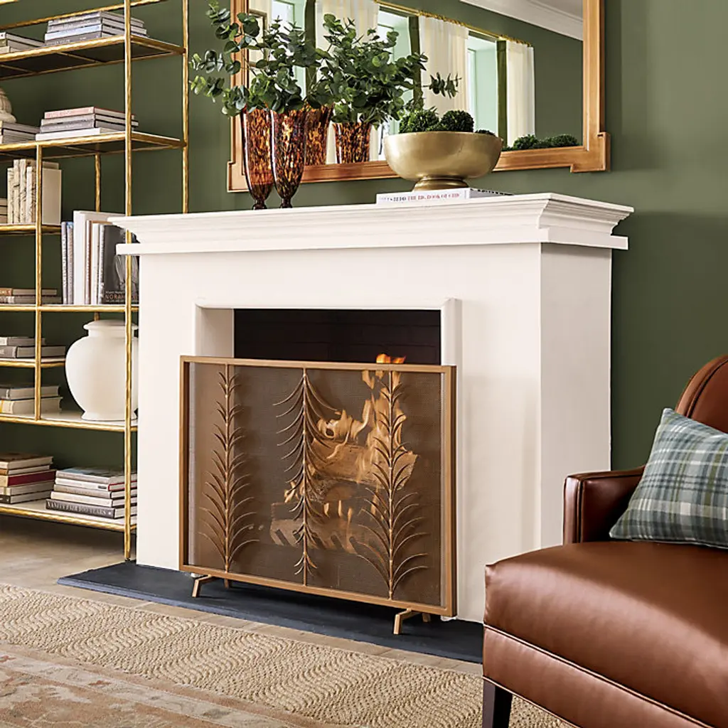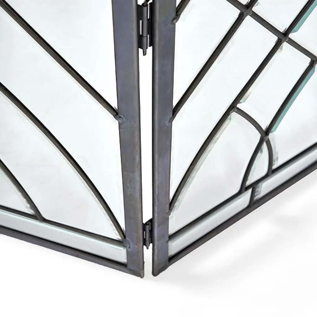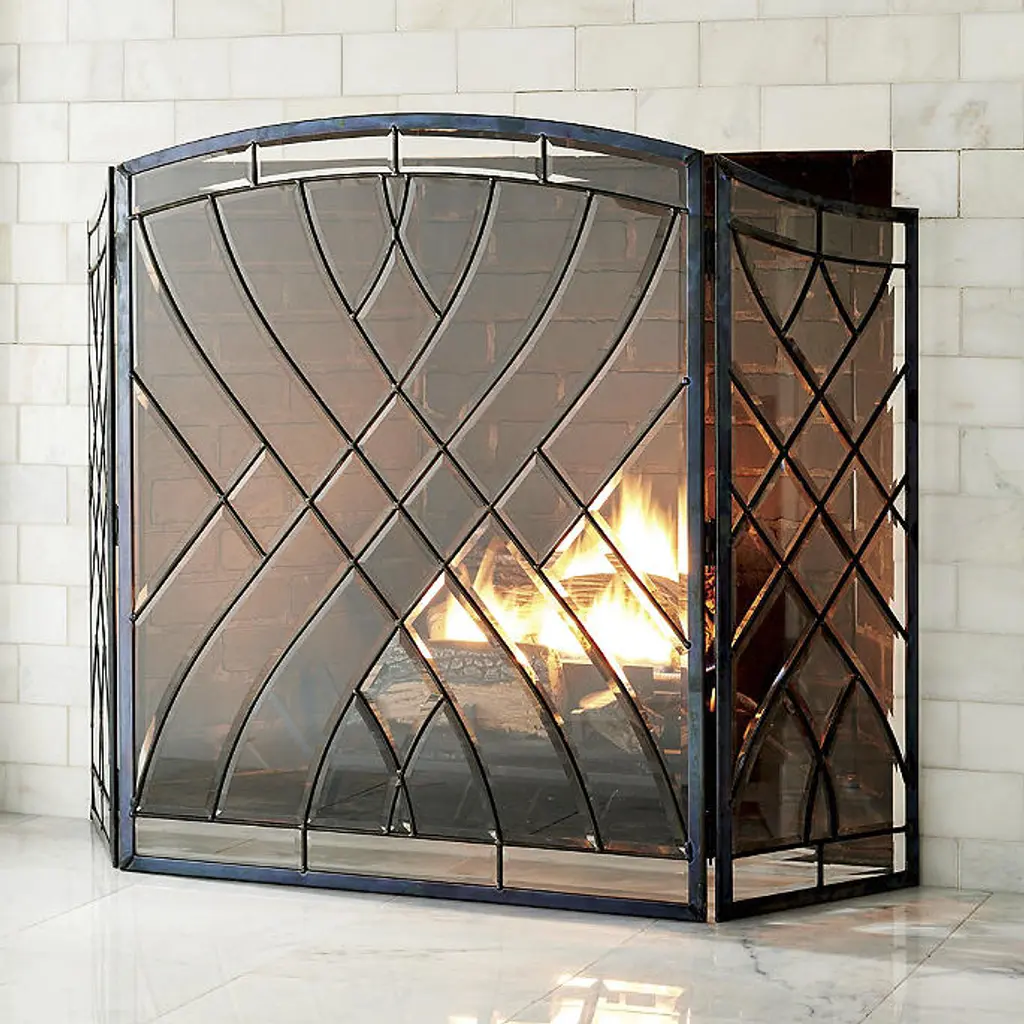 Turn your typical gas fire into a glittering show of flames with our Victoria Glass Fireplace Screen. The beveled glass panels of this screen reflect even moderate flickers from fires, filling the room with a dazzling light display. Hinged side panels bend to fit most hearth openings Elegantly curved design Gunmetal finish darkens slightly over time due to oxidation The screen withstands heat up to 375F-390F, and can be used with compressed logs, gas logs or small wood fires with 1.5ft space apart Minor assembly required At Frontgate, our primary focus is quality. We guarantee that every product we sell will stand up to the supreme test – our customers' satisfaction. To learn more about our policies, visit our Shipping & Processing, Returns & Exchanges and Warranty & Price Guarantee pages.