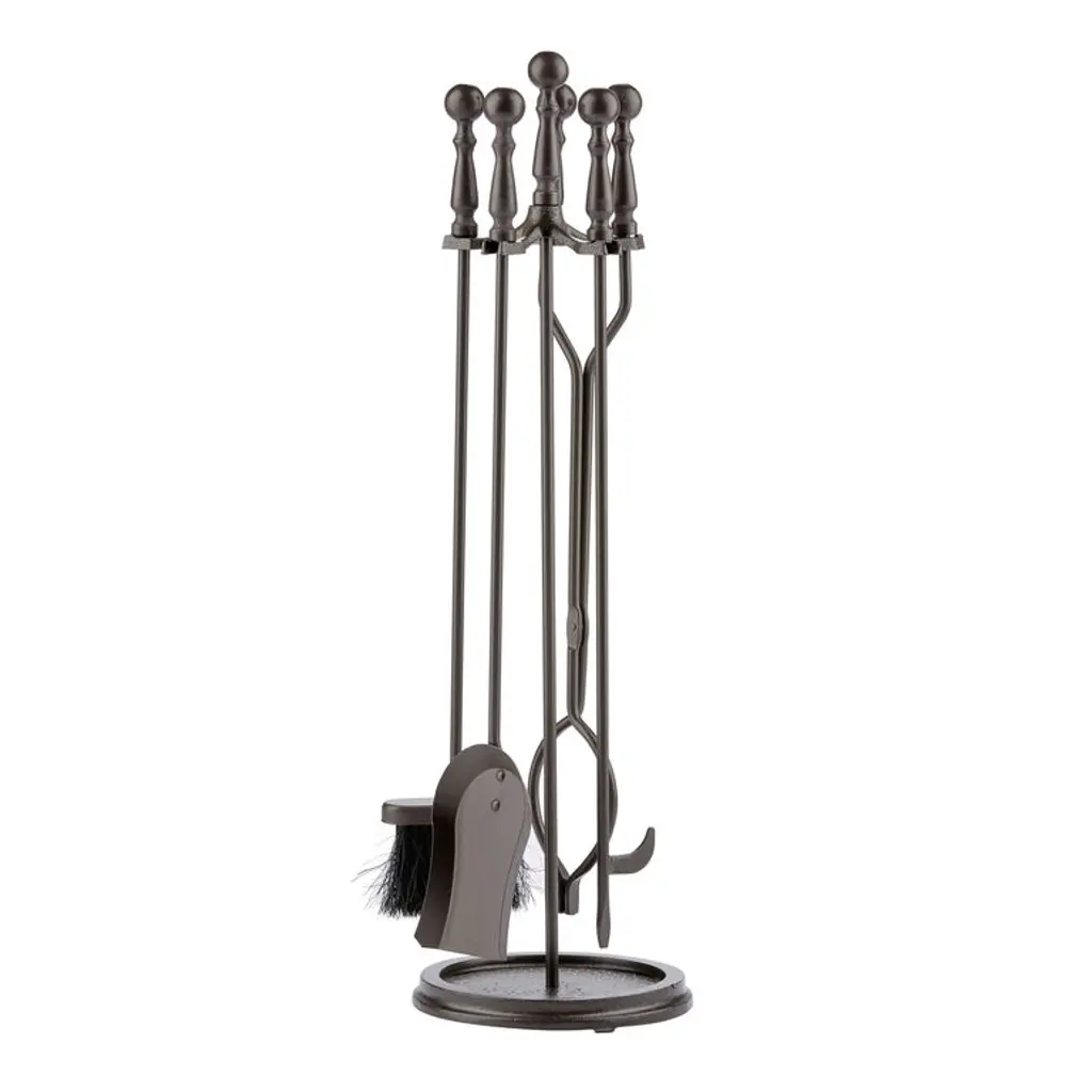 Bronze Steel Ball Handle 5 Piece Fireplace Tool Set