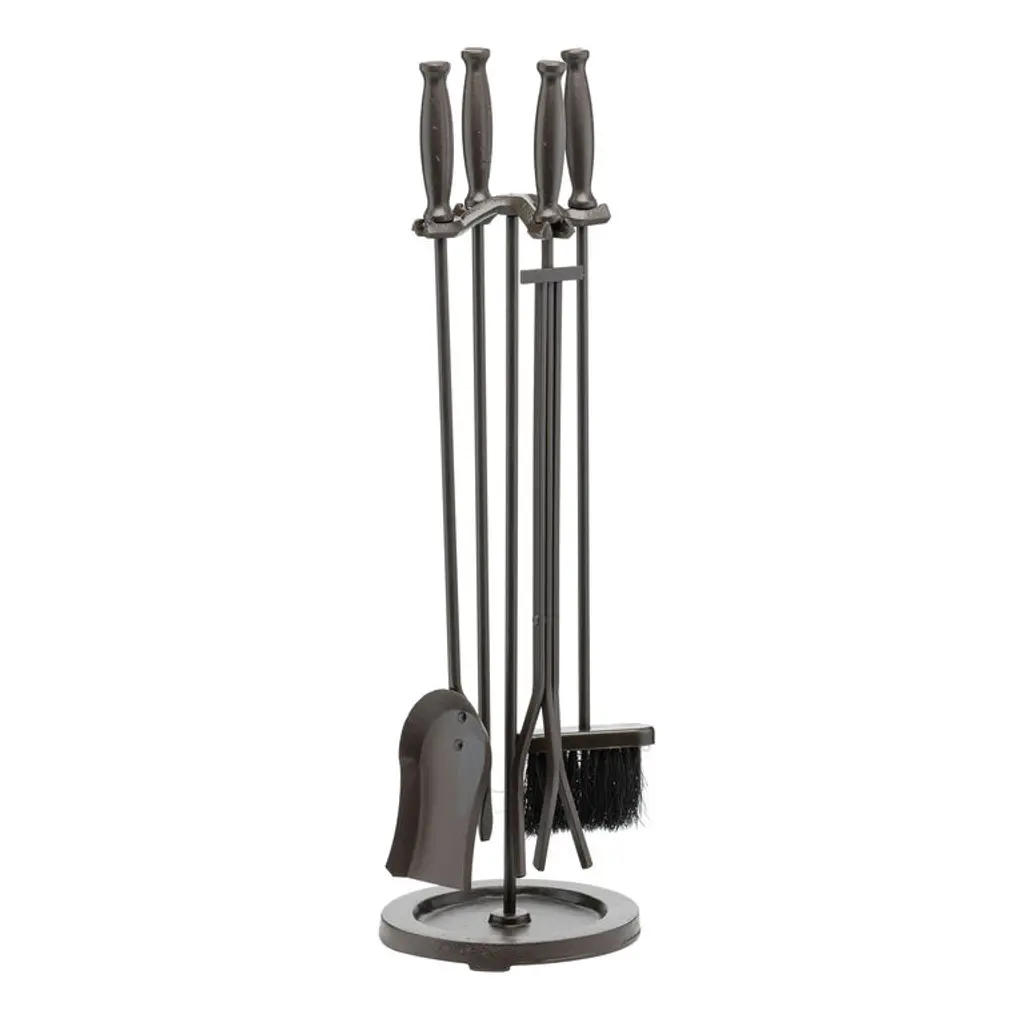 Bronze Steel Twisted Ring Handle 5 Piece Fireplace Tool Set
