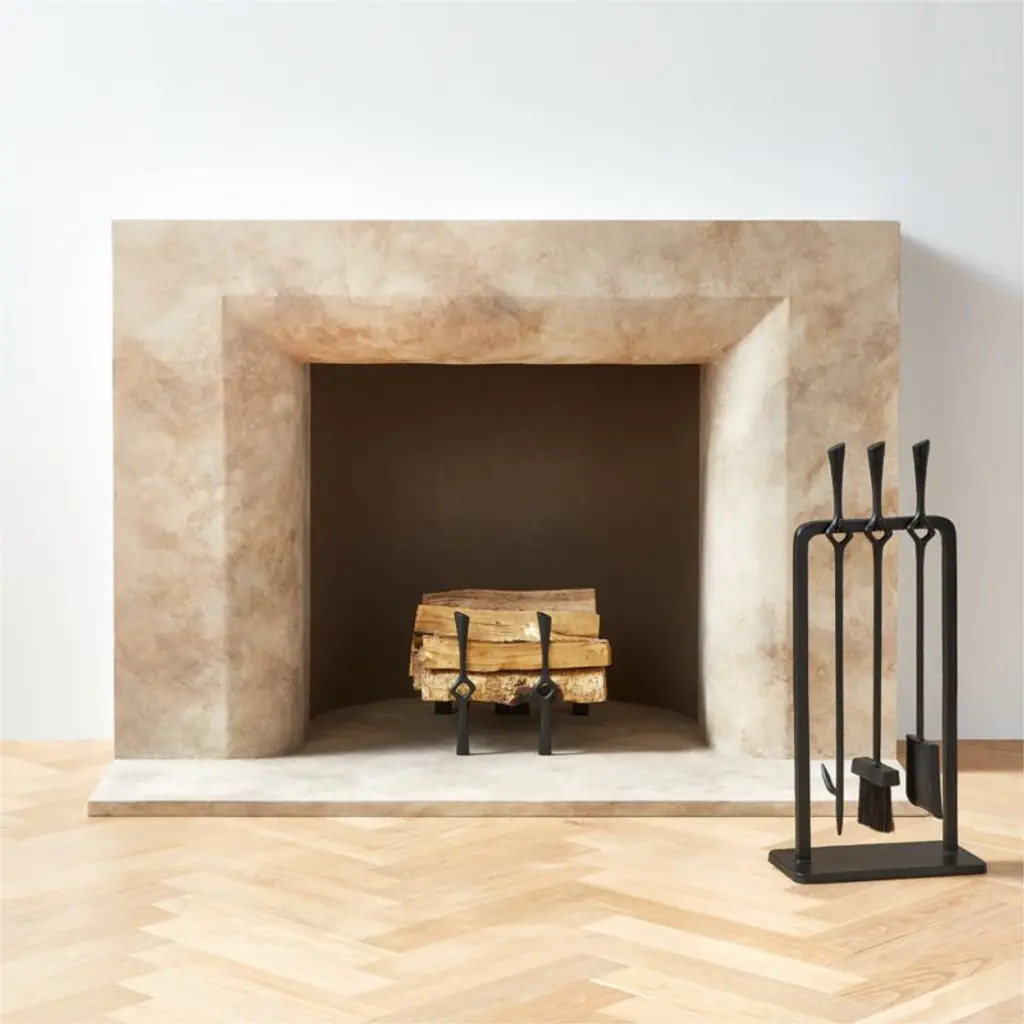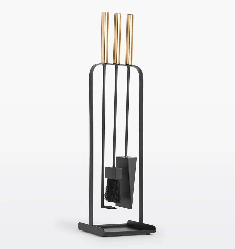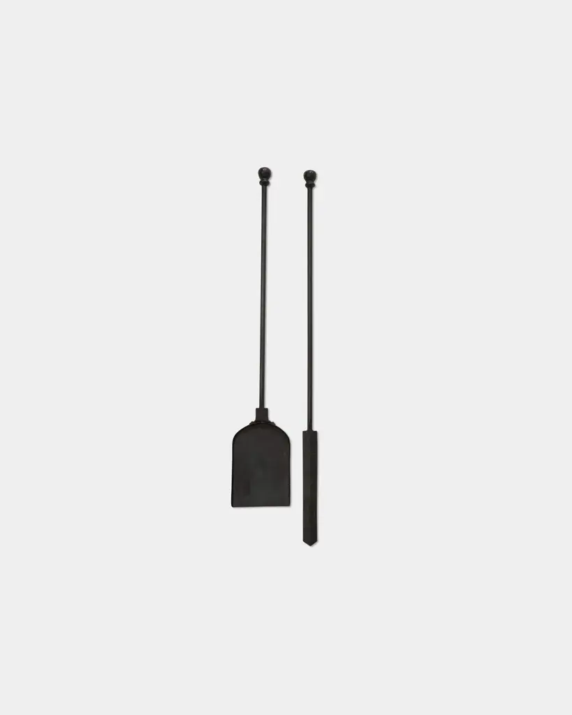A sleek addition to the hearth, black cast iron fireplace tool set includes a poker, shovel and brush. Pair with the Ignacio cast iron andirons for a coordinated look. CB2 exclusive.