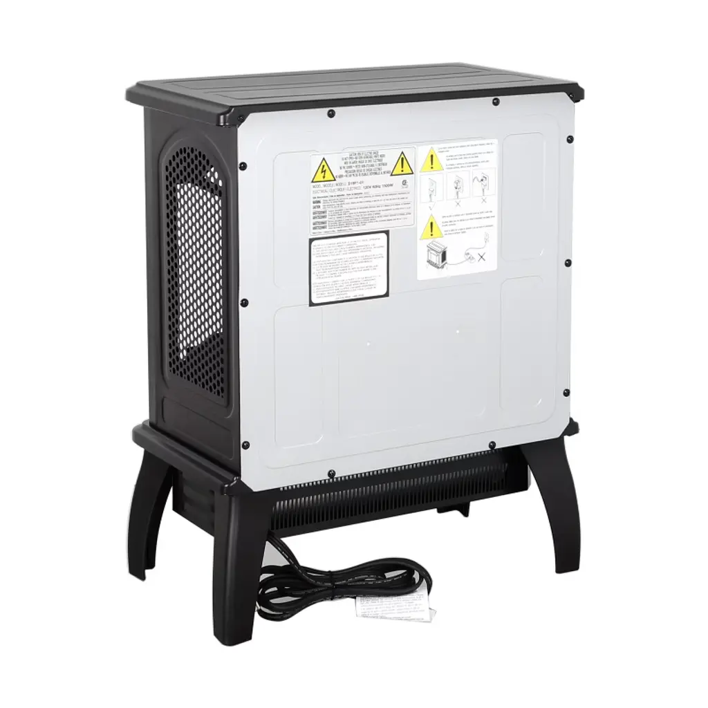 18-inch 3D flame electric infrared quartz stove with remote control, providing realistic flame effect and safe, efficient heating for small spaces. Ideal for bedrooms, offices, or apartments.