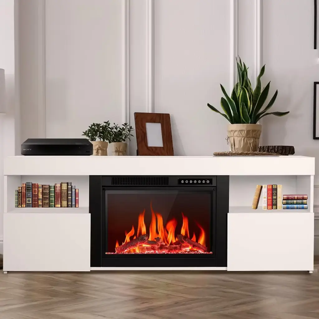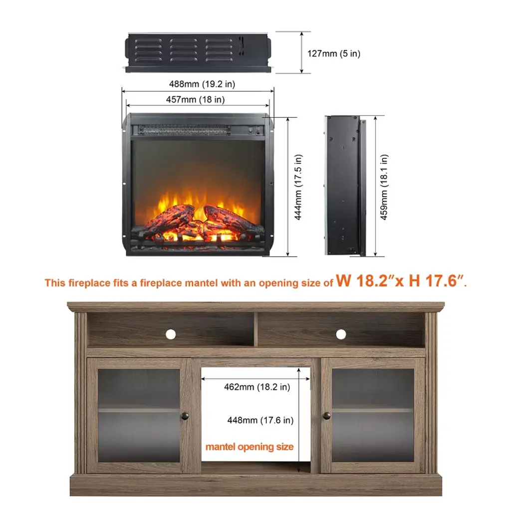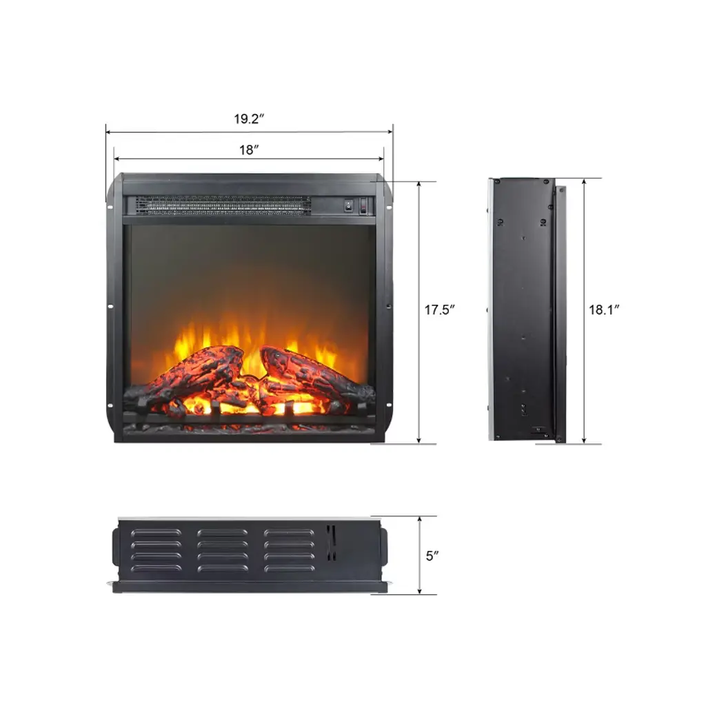 Compact 18-inch electric fireplace insert with ultra-thin design, realistic log set, and flame effects. Provides supplemental heat while enhancing your room¡¯s ambiance. Overheating protection ensures safe operation for home or office use.