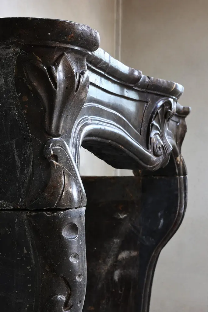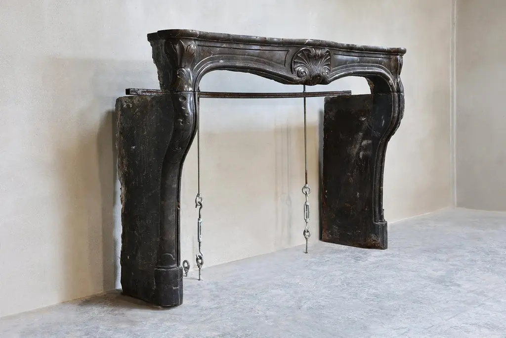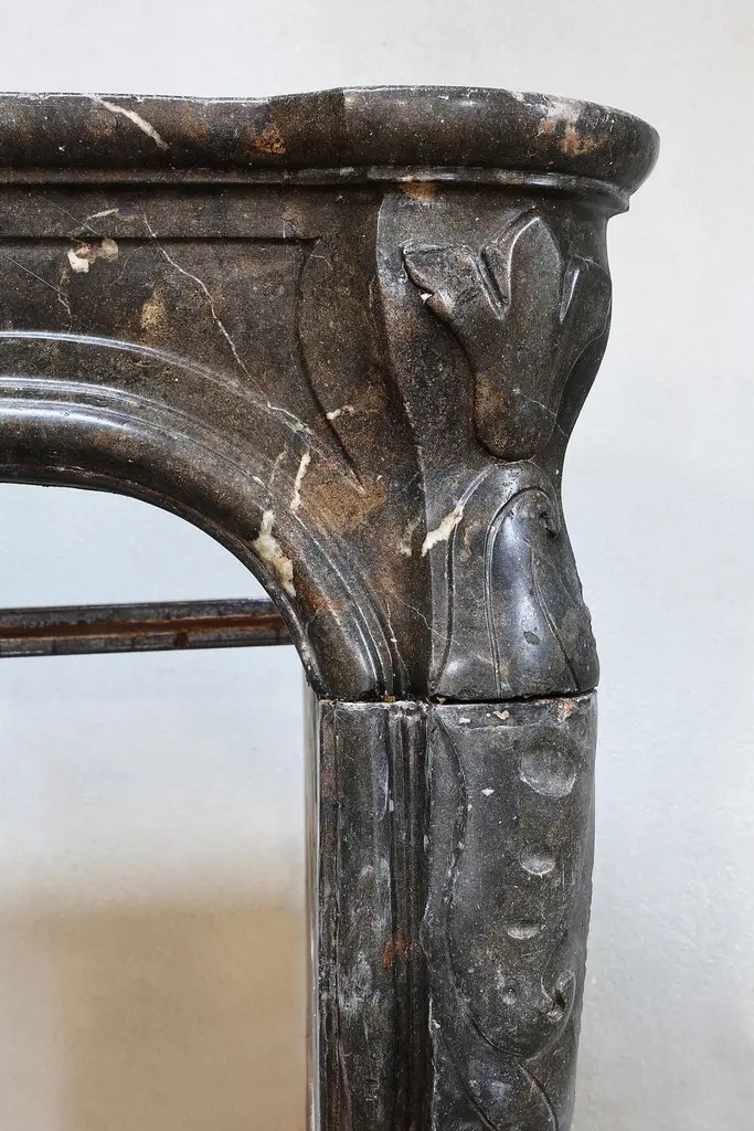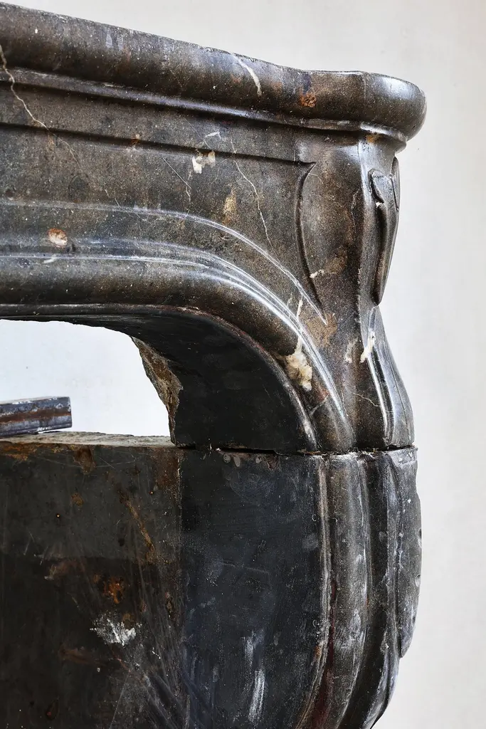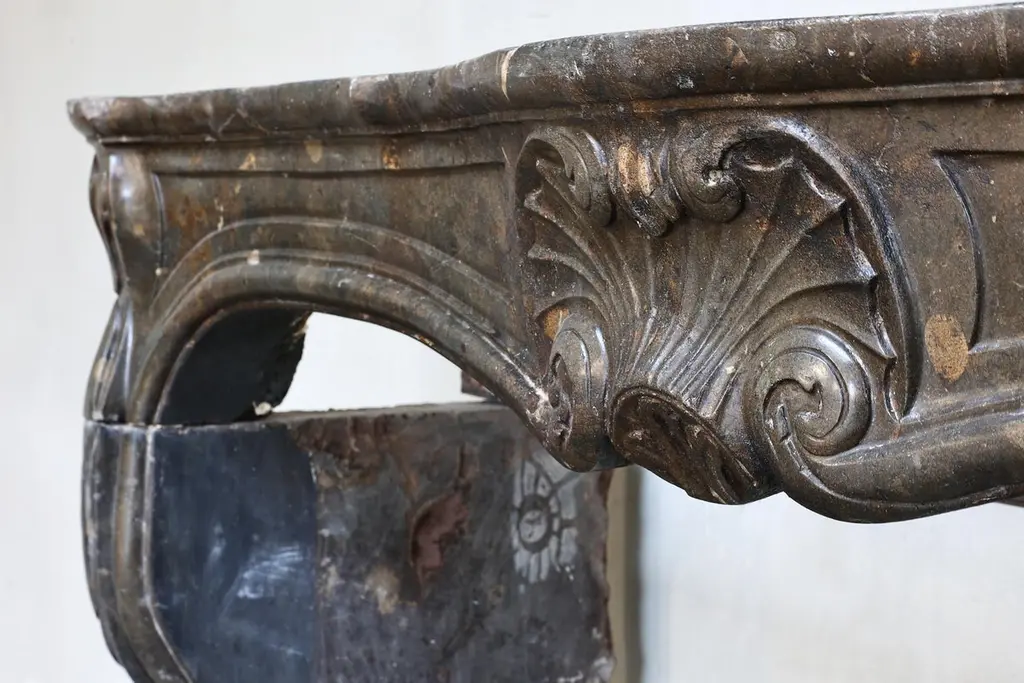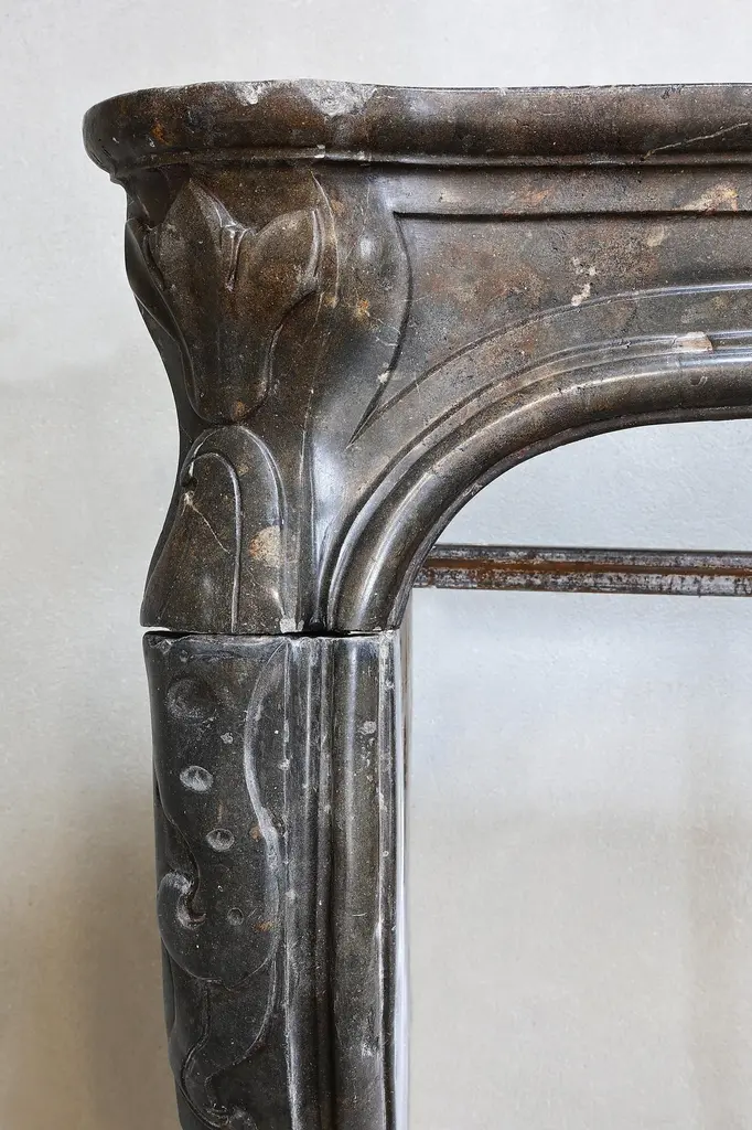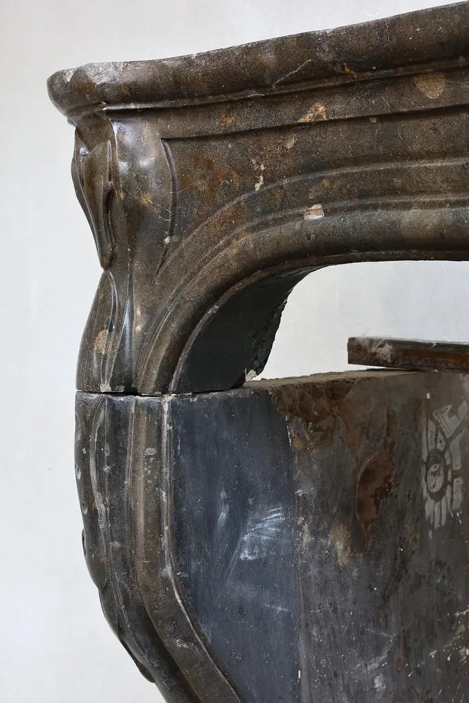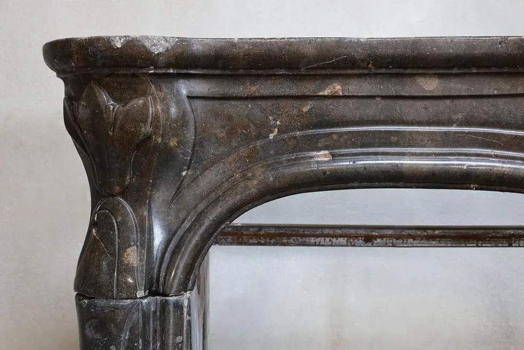 Beautiful antique fireplace of Burgundian marble stone. This fireplace is in the style of Louis XV and dates from the 19th century and features a beautiful scallop in the middle of the front part.