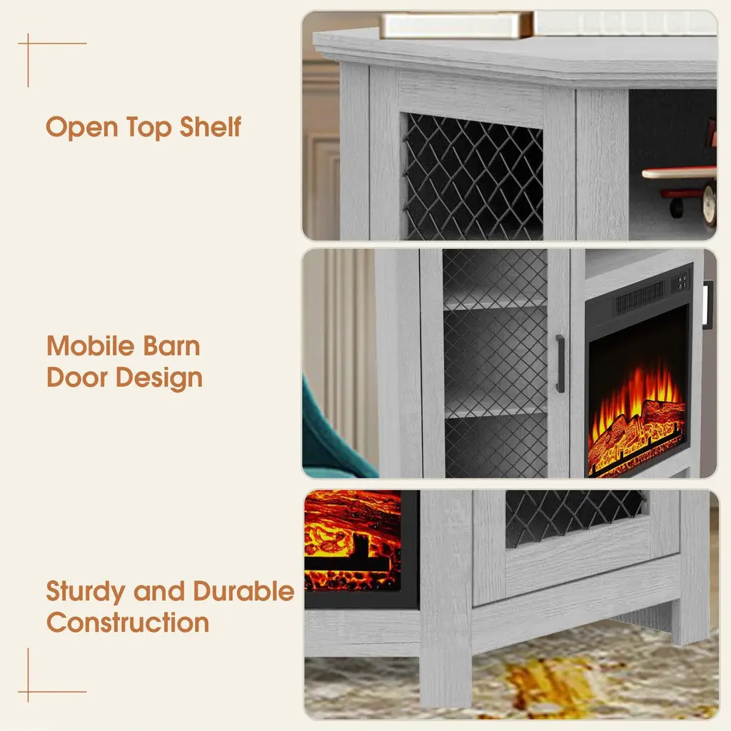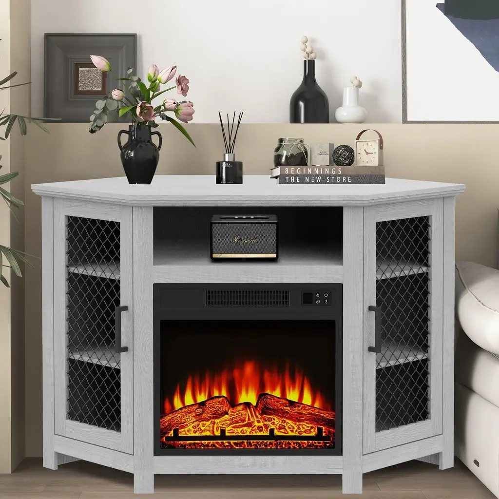 45" Corner Electric Fireplace Tv Stands Console Table Insert 18" Electric Fireplace With 2 Metal Mesh Doors - Grey