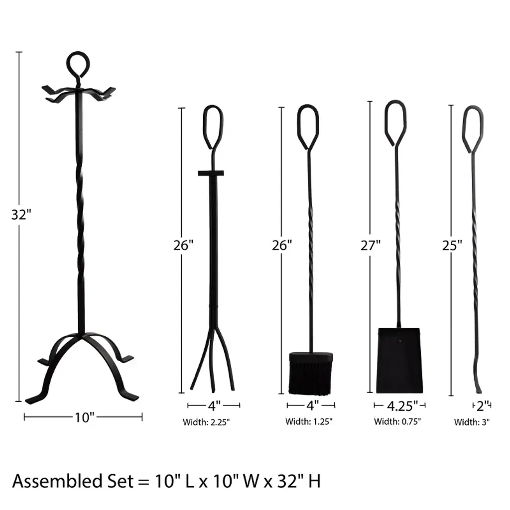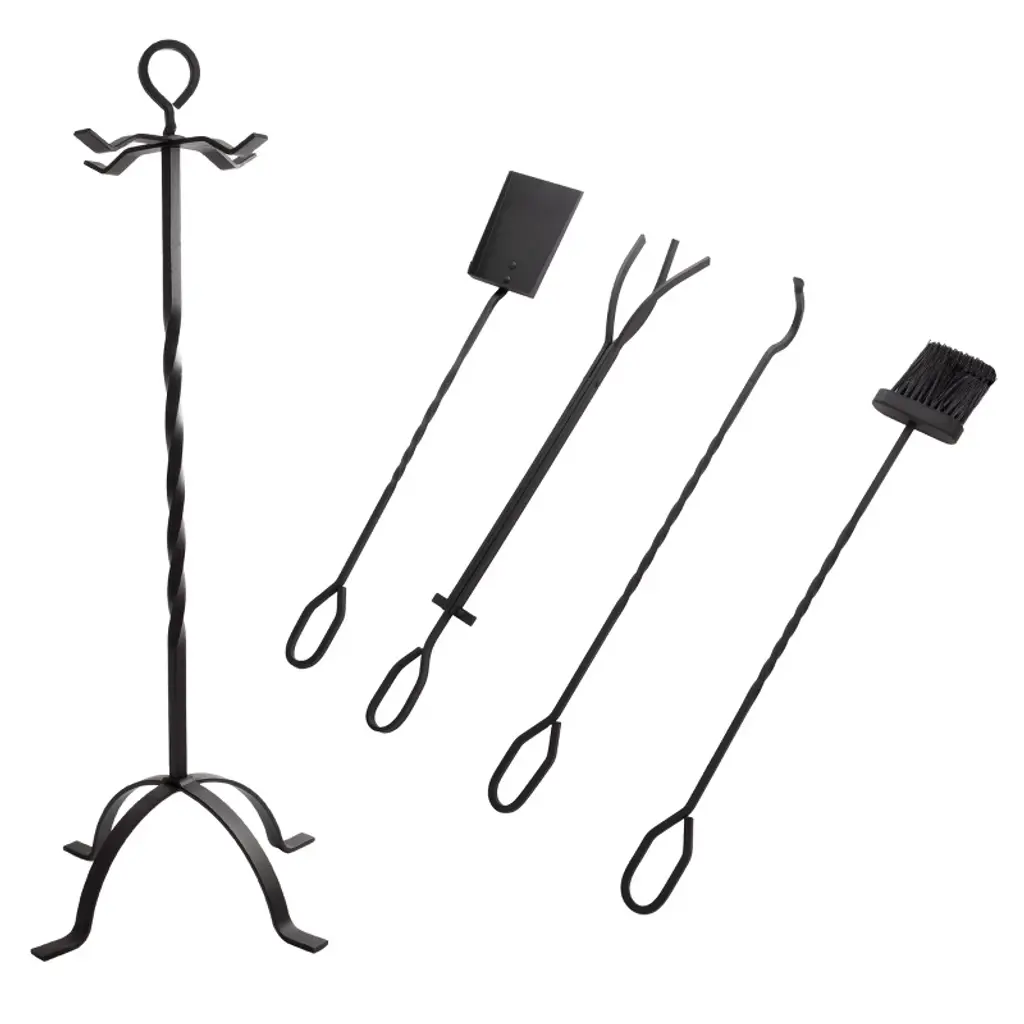 5-piece Fireplace Tool Set - Holds Wrought Iron Wood-burning Tools - Includes Heavy-duty Stand, Shovel, Broom, Tongs, And Poker By Lavish Home (Black)