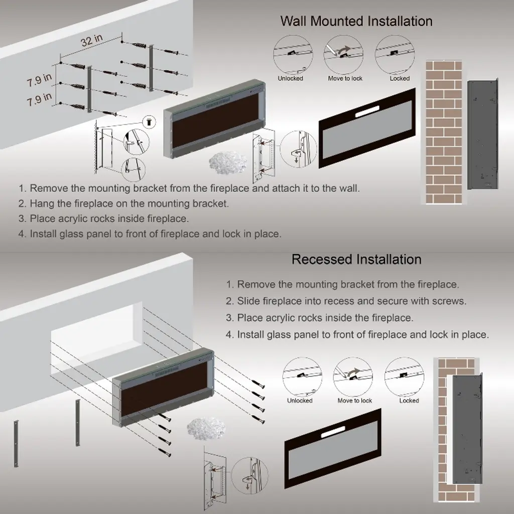 50-inch Smart Wifi-enabled Electric Fireplace Heater, Recessed In-wall And Wall-mounted