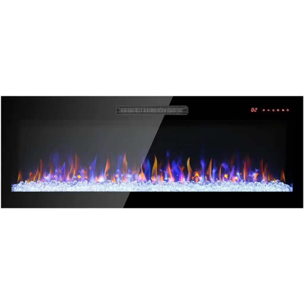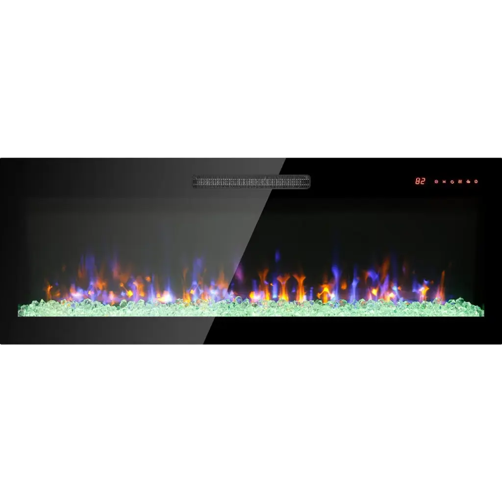 This 60-inch recessed ultra-thin electric fireplace adds a sophisticated focal point to your living room. Featuring multi-color flames, LED emberbed, and remote control, it delivers warm ambiance and modern style. Its energy-efficient design and easy installation make it perfect for contemporary homes.