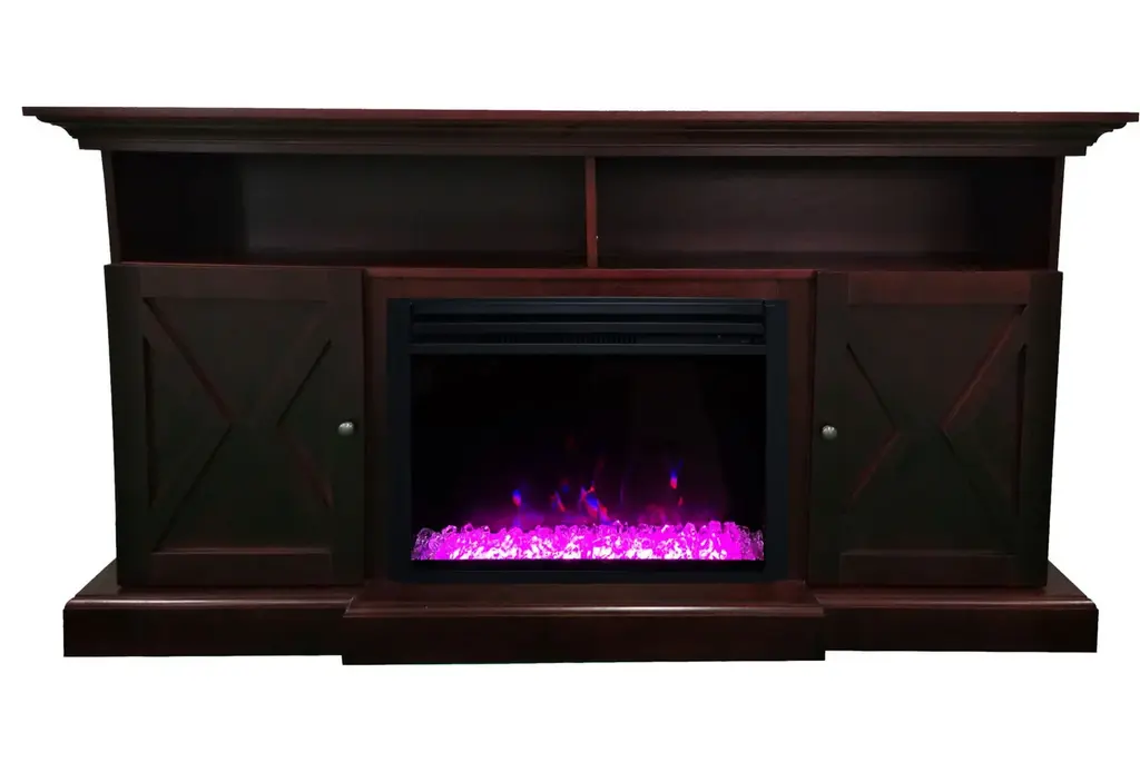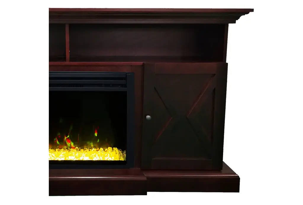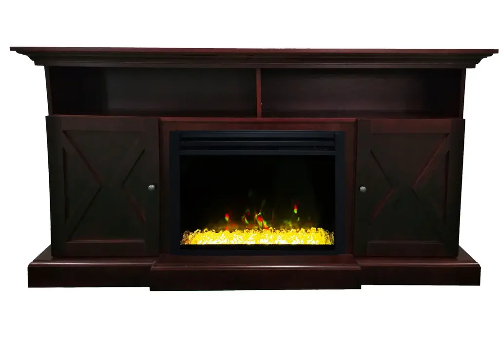 62" Summit Farmhouse Electric Fireplace Mantel With Crystal Insert, Mahogany