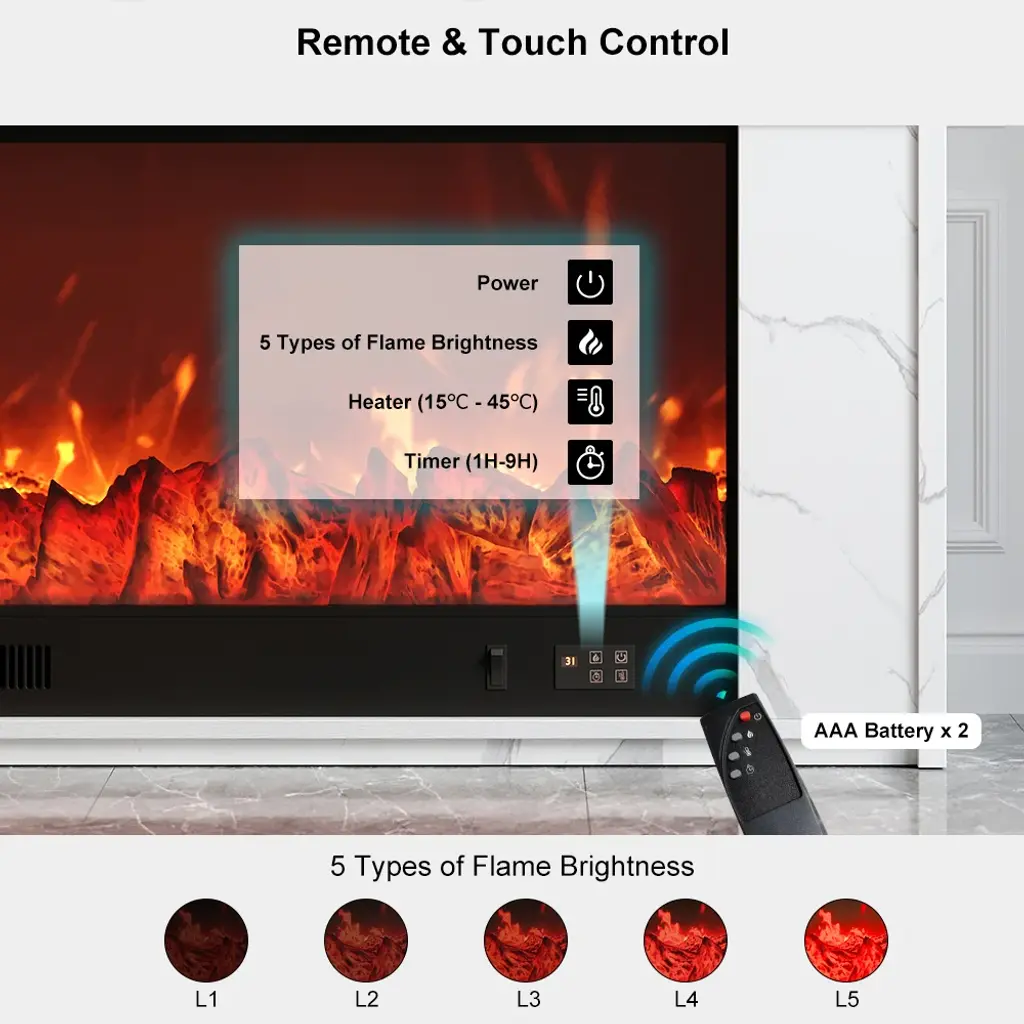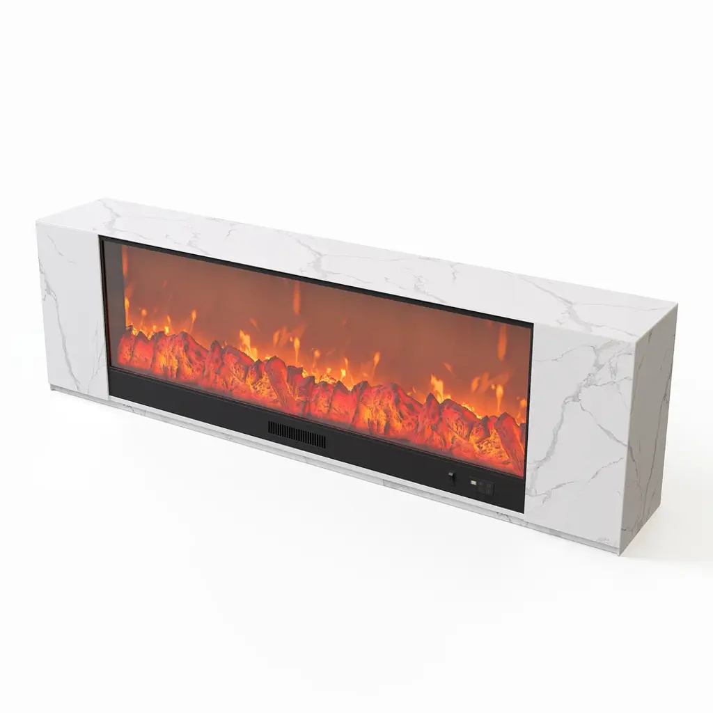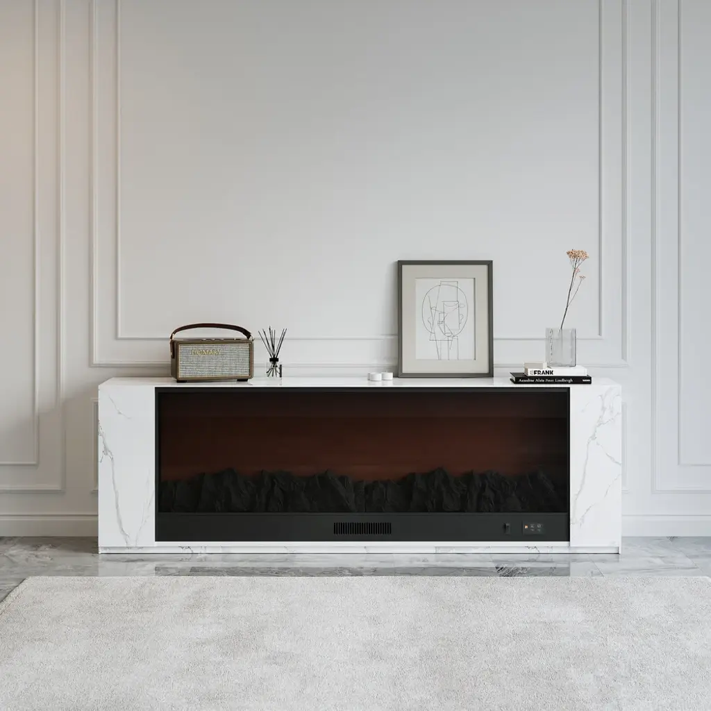 Elevate your living space with this exquisite marble-inspired stone coffee table. Featuring two drawers for discreet storage, it combines luxury and functionality. Its sleek, minimalist design and durable construction make it a perfect addition to modern interiors. This electric fireplace TV stand is elegant and energy-saving. Features 5 types of flame brightness, realistic 3D flame effects, glowing logs, and embers, which can heat the area to 400 square feet, the temperature can be adjusted. No firewood, no dust, no smoke, and no clean up, creating a clean and cozy relaxing space for you.