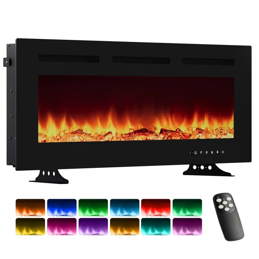 72" Wall-mounted Electric Fireplace: Tempered Glass, 12 Flame Colors, Remote, 1500w Heater (5000btu), 5 Brightness, Timer, Log & Crystal Effects