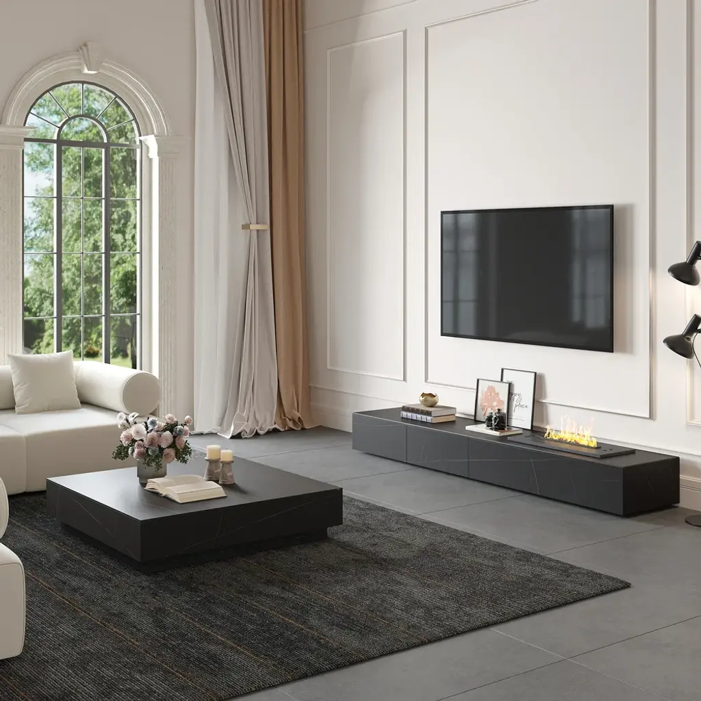 79" Sintered Stone Electric Fireplace Humidifier Tv Stand & 39" Coffee Table Set
