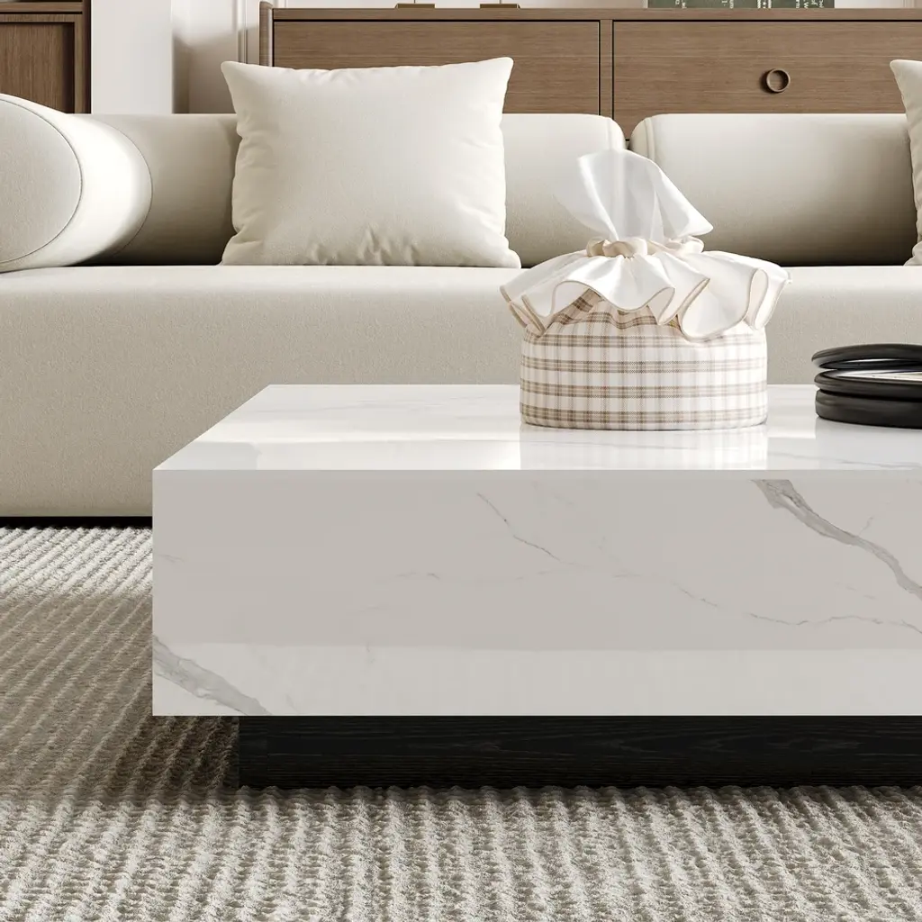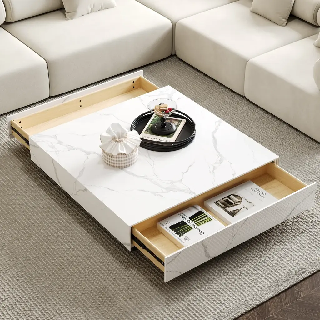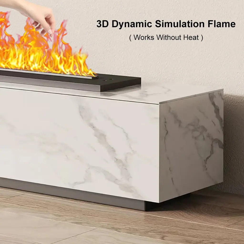 Elevate your living space with this exquisite marble-inspired stone coffee table. Featuring two drawers for discreet storage, it combines luxury and functionality. Its sleek, minimalist design and durable construction make it a perfect addition to modern interiors. This multifunctional TV stand combines a faux marble finish with a built-in fireplace and humidifier Featuring remote control operation, it offers warmth and comfort while the two drawers provide convenient storage A perfect addition to elevate both the style and functionality of your living room