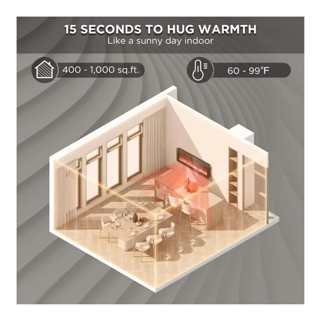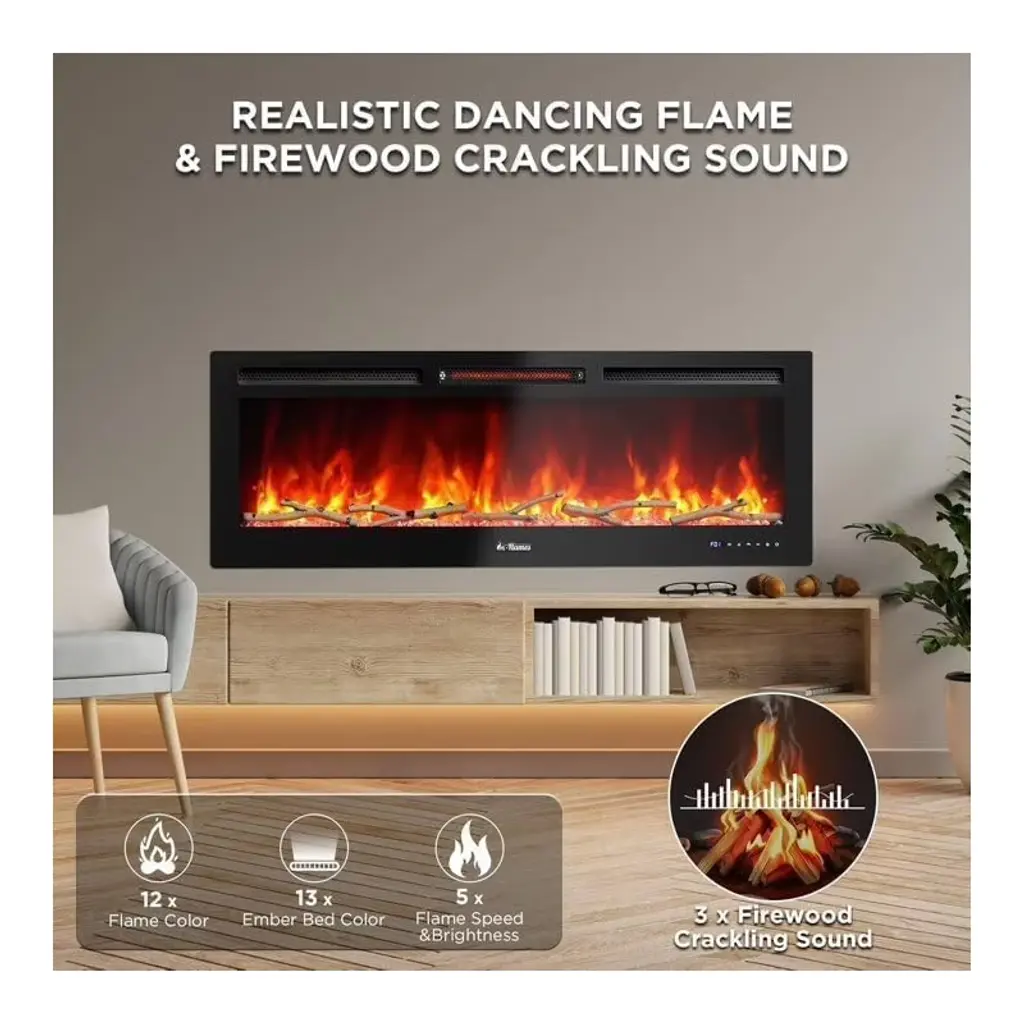 "90" Black Electric Fireplace ¨C Recessed/Wall Mount Heater with 12 Flame Colors, 750W/1500W (TROPOW Brand)"Product Details & Specifications:Flexible Installation OptionsRecessed or wall-mounted for versatile placementUltra-slim 6" depth saves spaceCustomizable Flame Effects12 adjustable flame colors for seasonal ambianceDynamic flame brightness controlDual Heating Modes750W (energy-saving) & 1500W (high-power)Quickly warms roomsSmart Control FeaturesRemote + touch screen operation9-hour auto timer for safety & conveniencePremium Build & SafetyPolished black finishOverheat protectionBrand: TROPOWColor: BlackDimensions: 87"D ¡Á 6"W ¡Á 20"HHeat Output: 750W/1500WWeight: 114 lbsInstallation: Recessed/Wall Mount