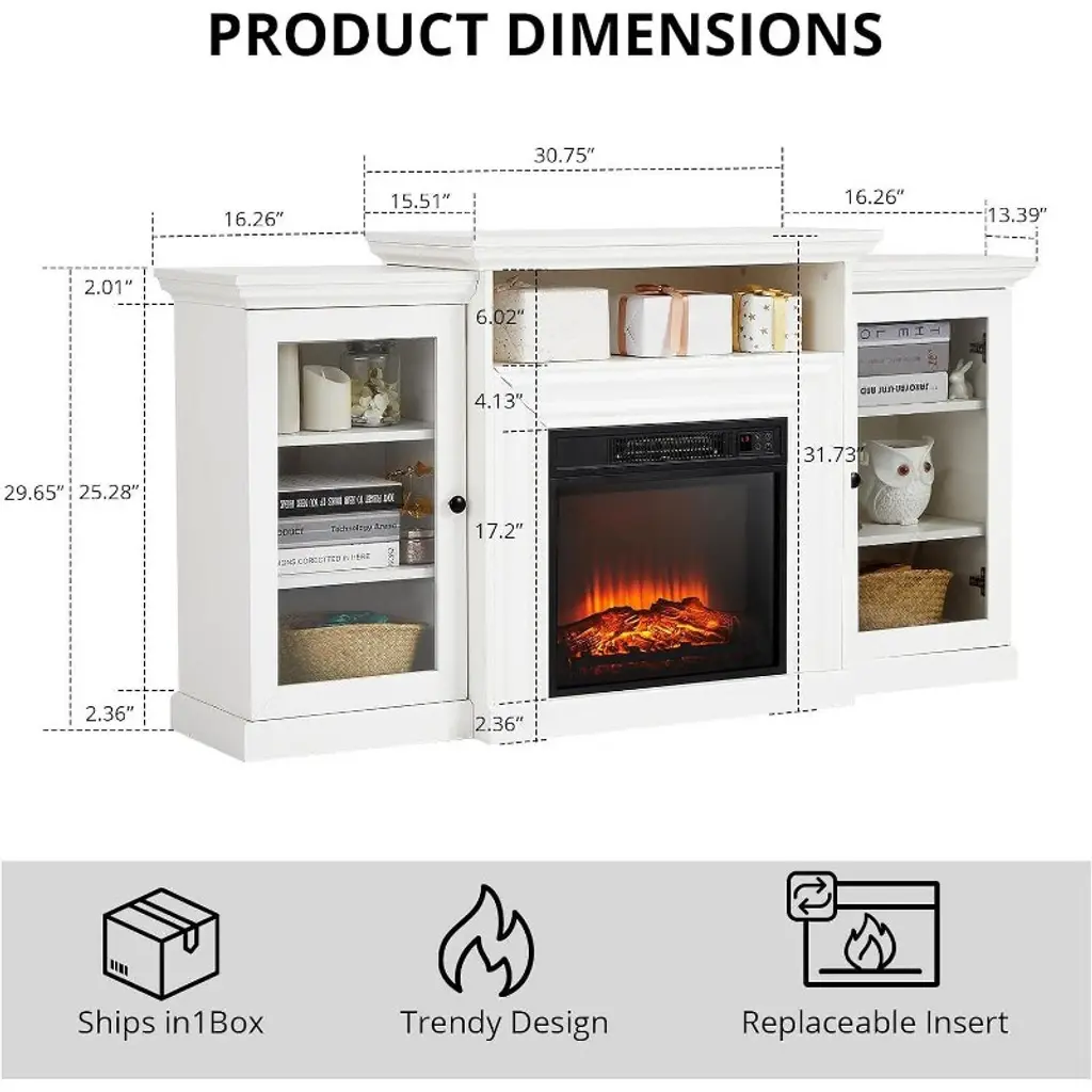 Elevate Your Living Space The Acekool Electric Fireplace TV Stand combines elegant furniture design with modern heating technology. Crafted for living rooms, this piece anchors your entertainment area while providing adjustable warmth and striking visual appeal. Its sturdy wooden construction houses a removable fireplace core and open shelving, creating a multifunctional hub for relaxation and storage. Thoughtful Design Elements Immersive Ambiance: Three-level adjustable flames create depth and movement, mimicking natural firelight without smoke or ash Precise Climate Control: Set your preferred temperature range (72°F-82°F) via digital panel or remote Adaptable Storage: Detach the fireplace in summer to reveal extra shelf space for electronics and accessories Quiet Operation: Near-silent performance under 40dB maintains peaceful environments Safety First: Overheat protection and auto-shutoff timer provide security during extended use Dimensions & Specifications TV Compatibility: Securely holds flat screens up to 60 inches Fireplace Insert: 18" wide removable heating unit Shelving: Two open compartments for media components Construction: Solid wood frame with reinforced joints Controls: Top-panel interface + 6m-range remote Power: 1400W heating capacity Safety: Tip-resistant design with locking hardware