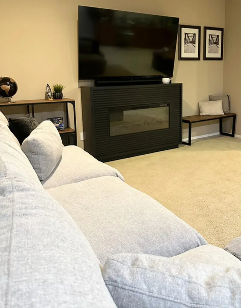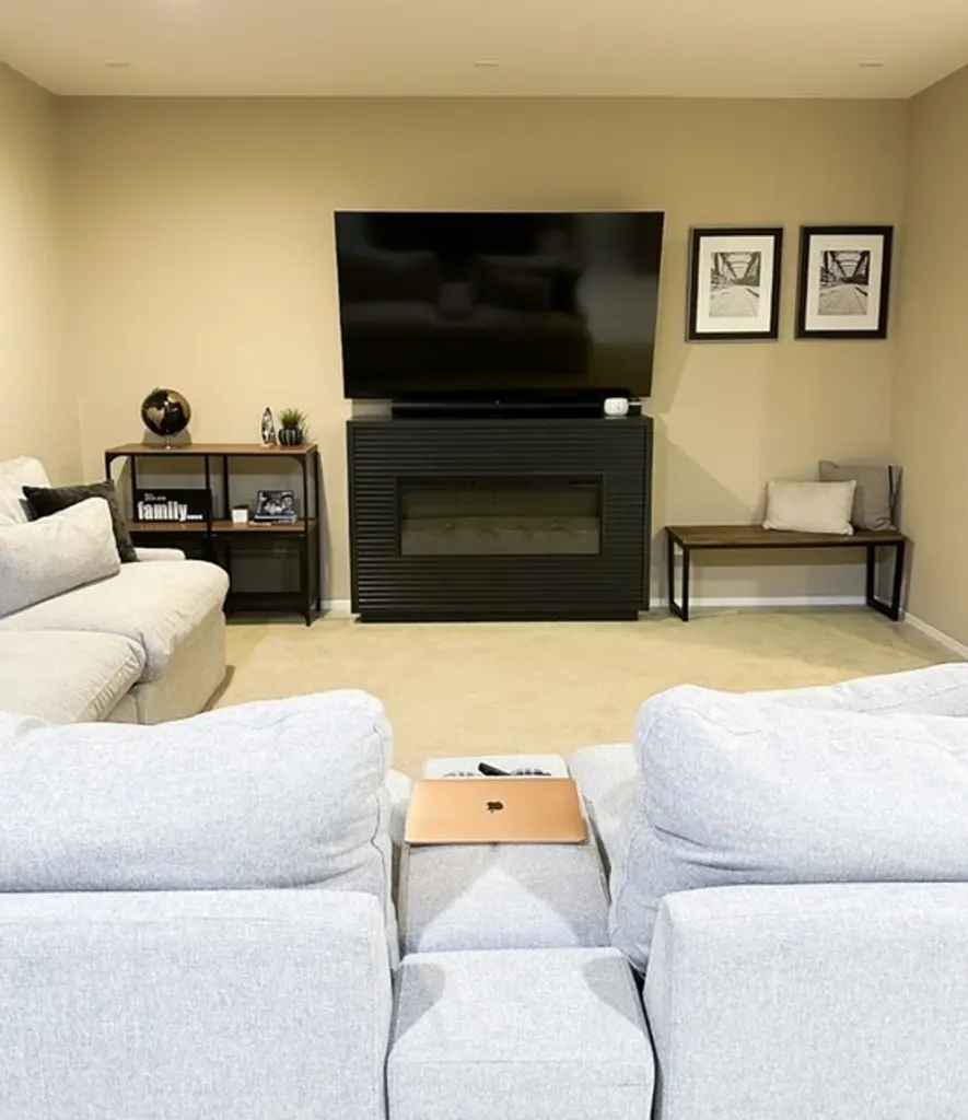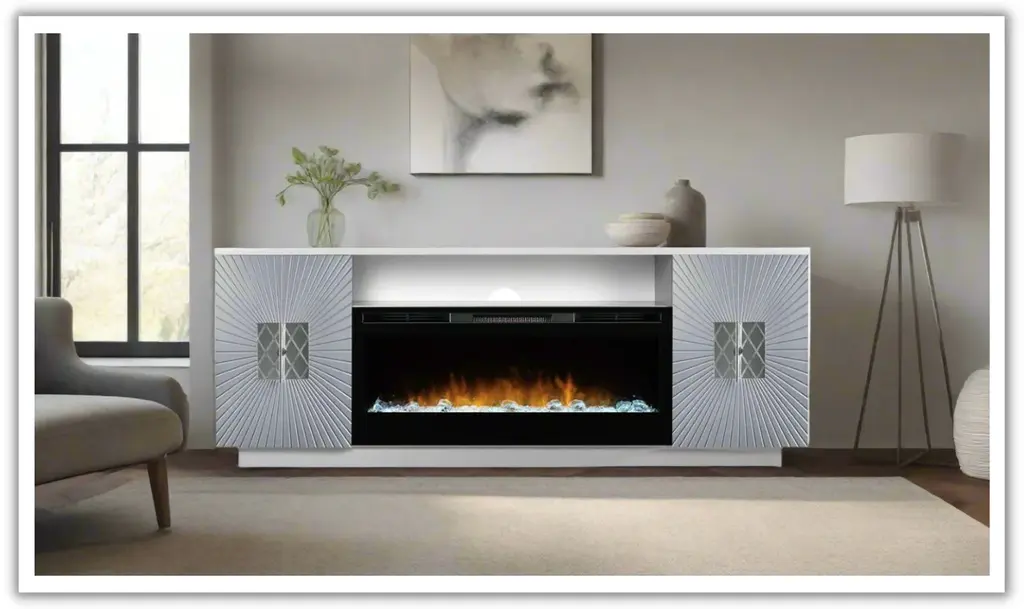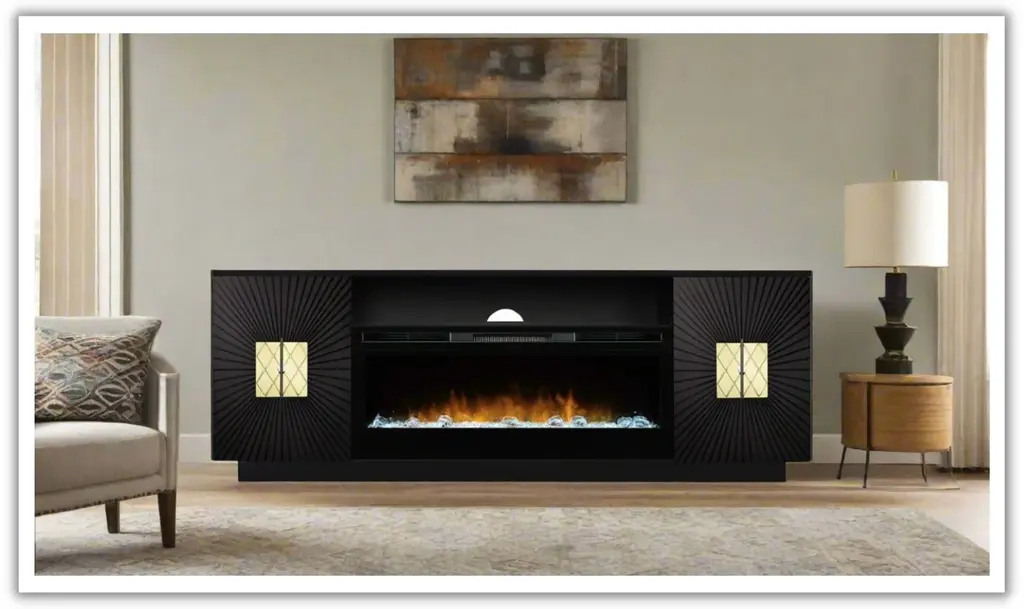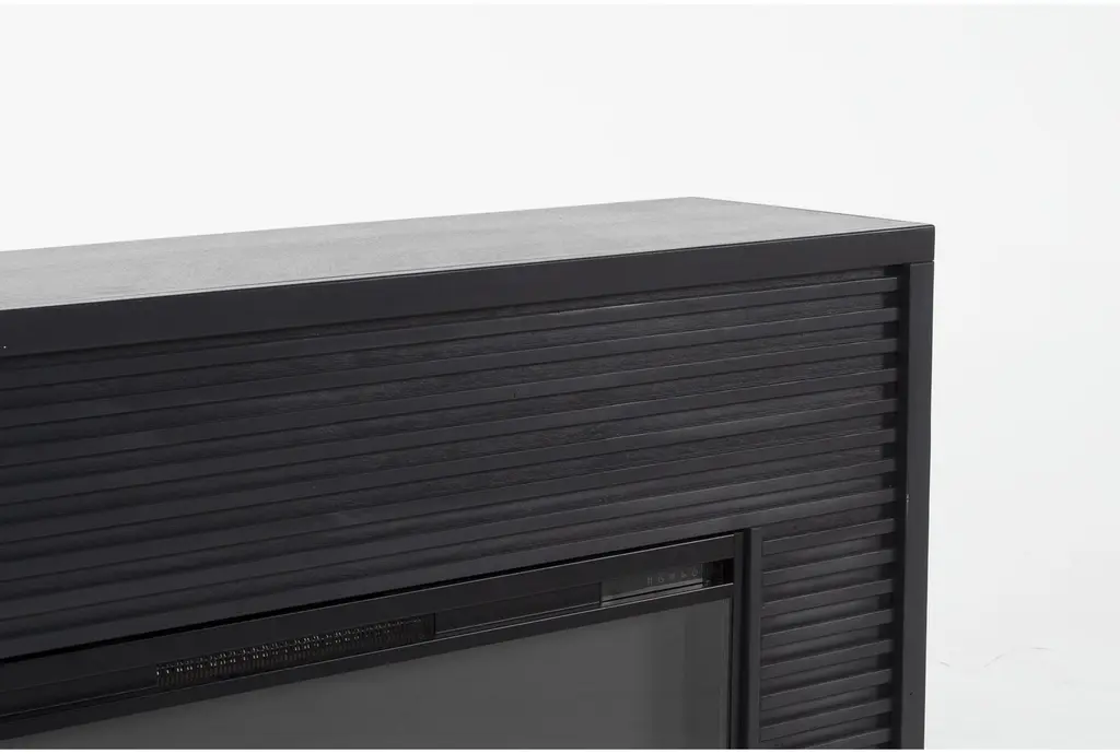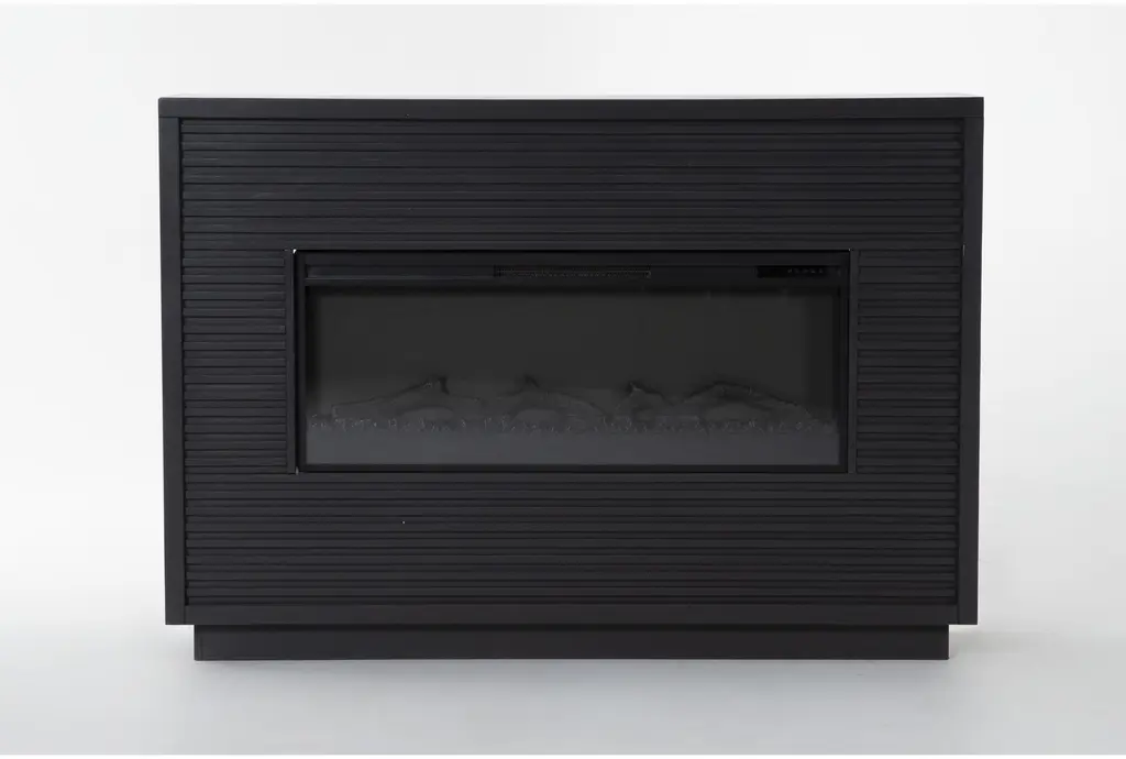 Introducing the Andre Black 62" Modern Electric Fireplace Mantel, a stylish addition to any living room. This sleek, Seal Skin Black fireplace mantel combines modern design with practical functionality to create a warm and inviting atmosphere. Made from poplar wood, it features built-in LED lights and a remote control for easy operation.