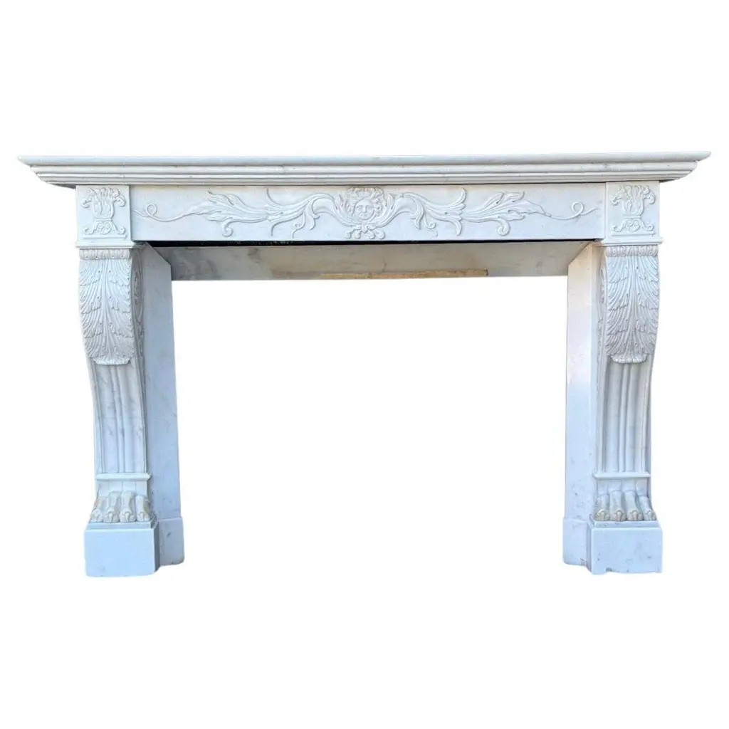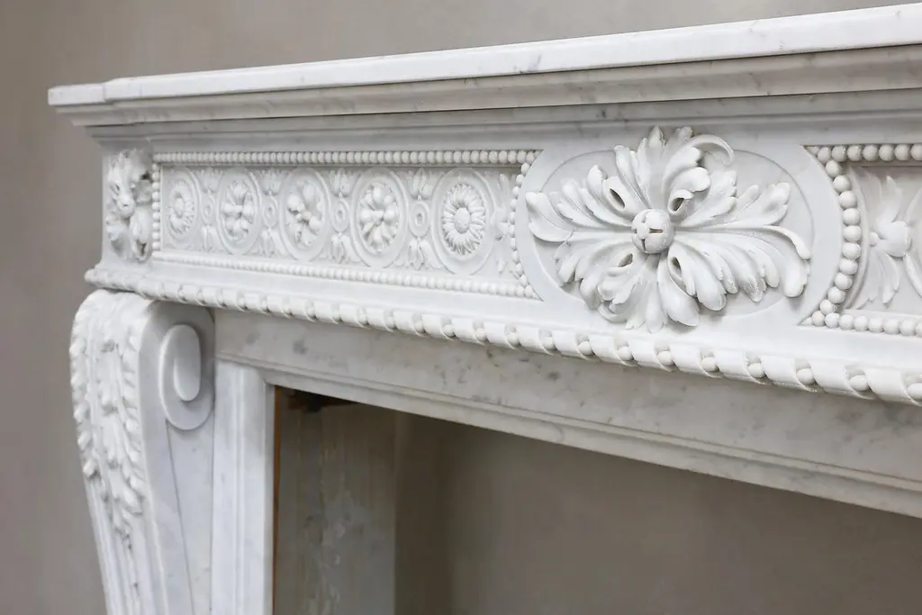 Antique Marble Fireplace Surround Carrara Marble Louis Xvi 19th Century