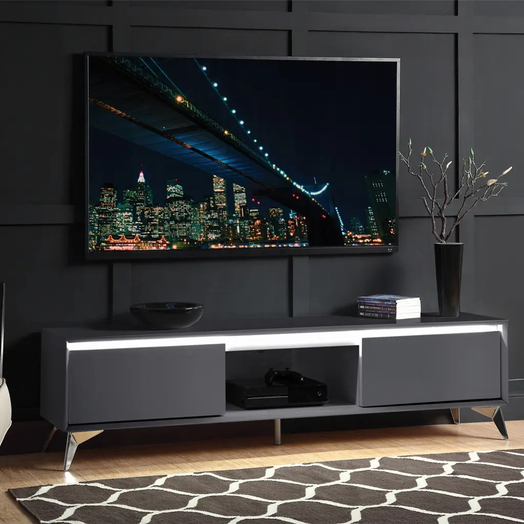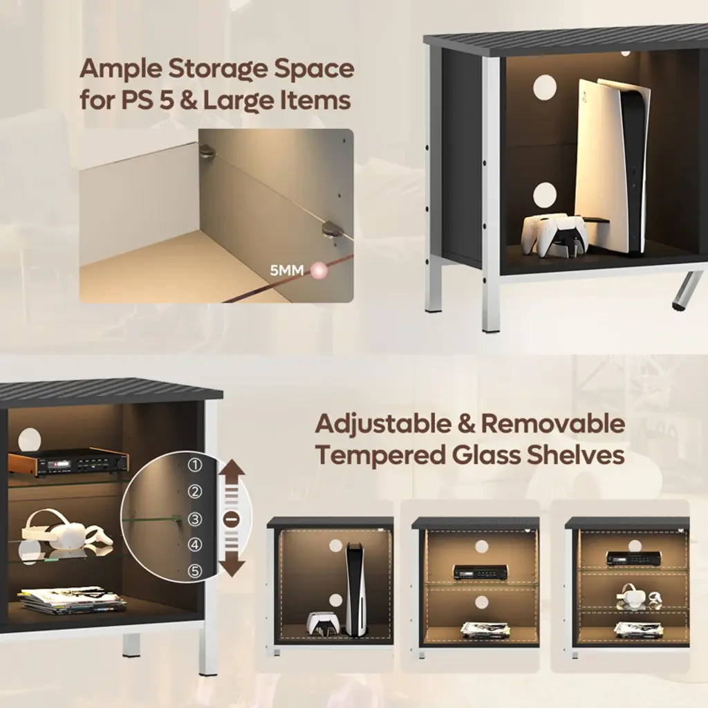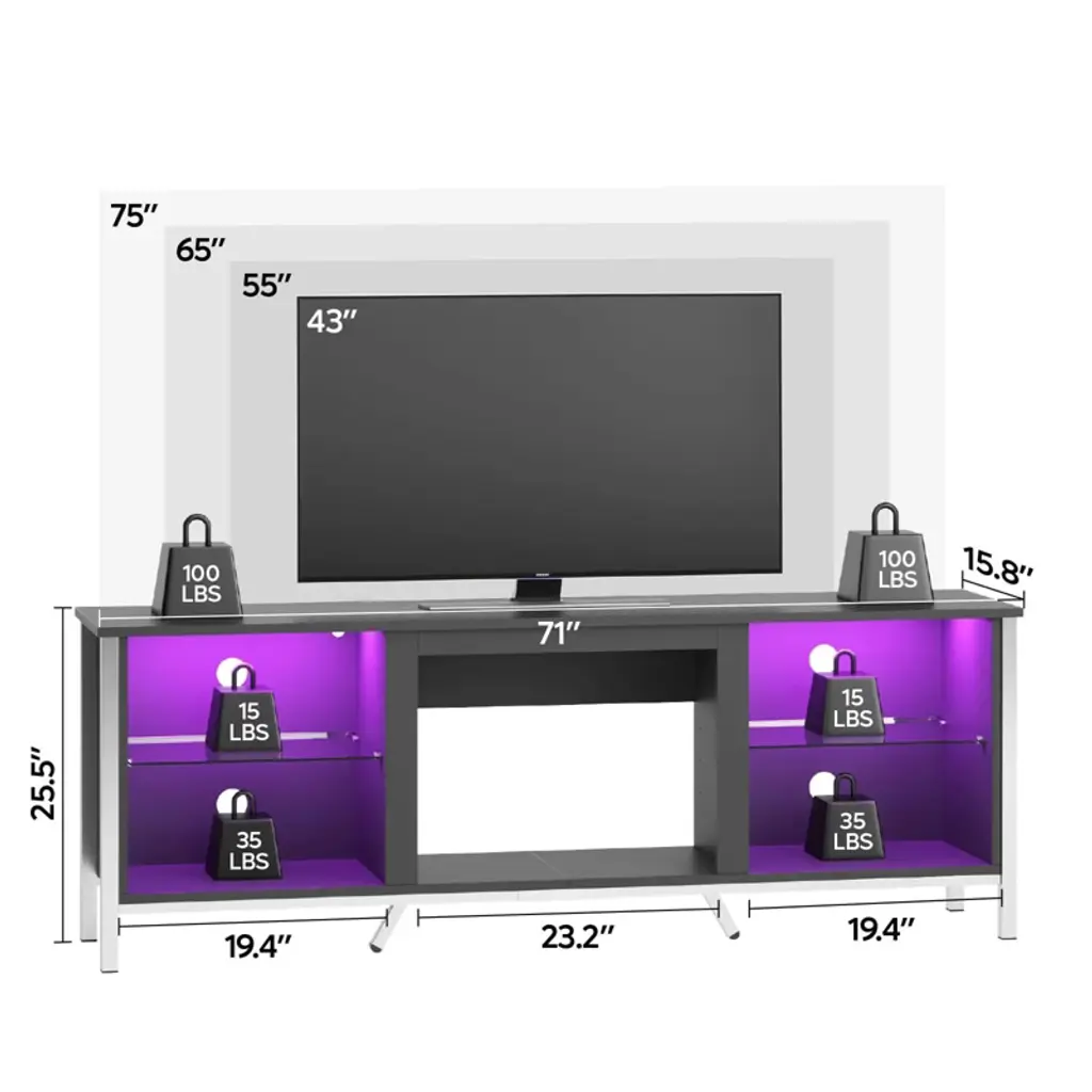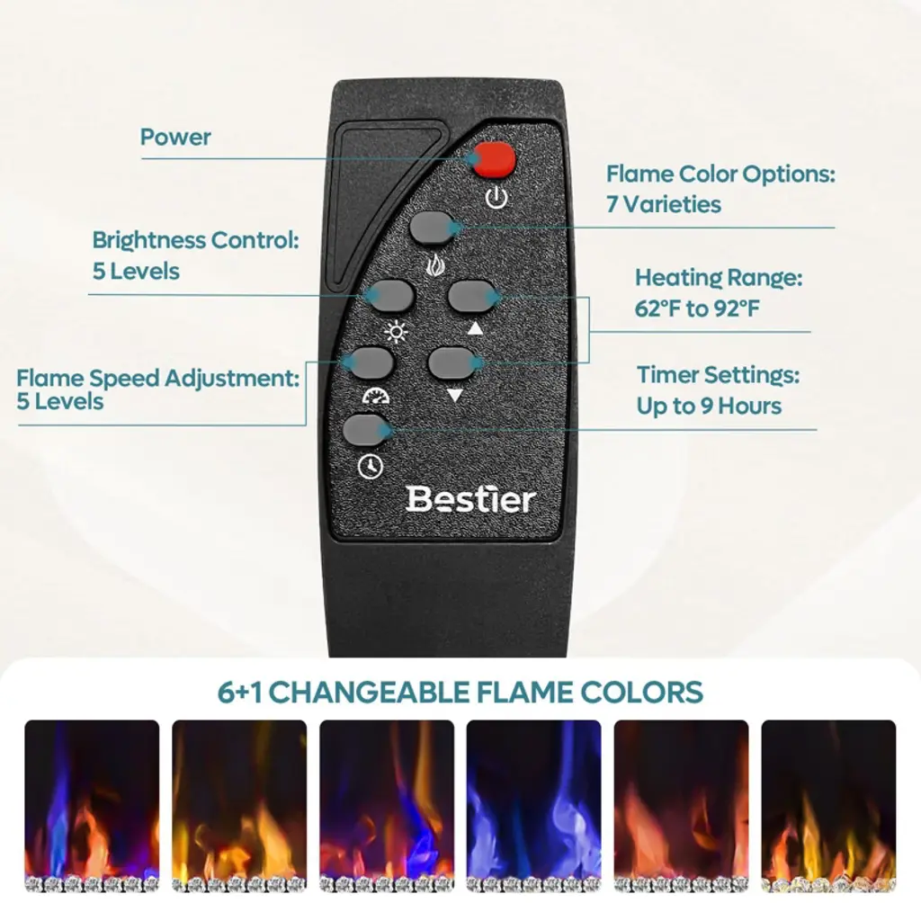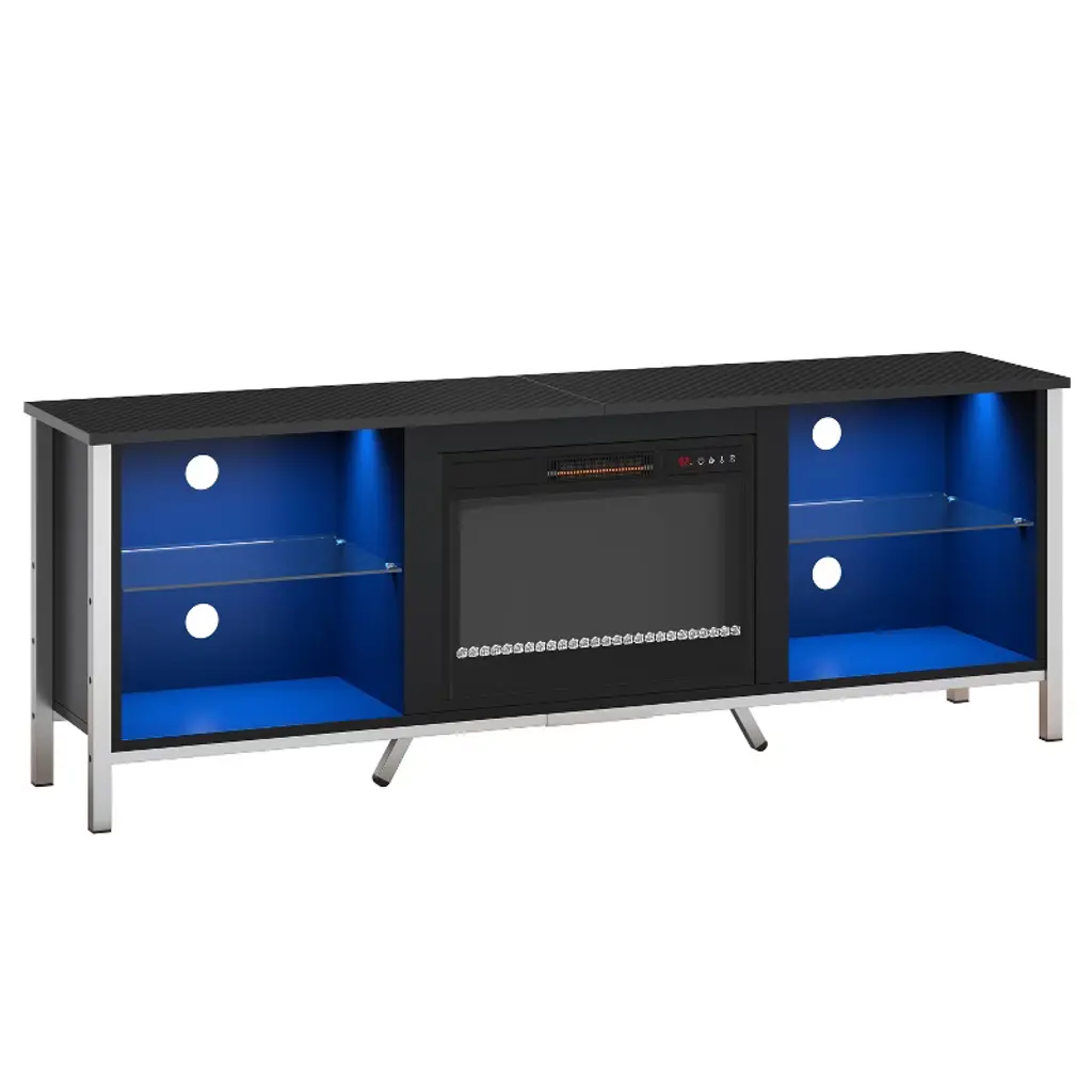 This fireplace tv stand combines functionality and style, perfectly fitting TVs up to 75 in. and adding a touch of fashion and elegance to your home. The fireplace features 7-changeable flame colors and 5 levels dimmer, set with temperature controller and timer to maintain air humidity. With a 17-key remote control and RGB LED technology, you can easily adjust the lighting to create a colorful and vibrant atmosphere in your entertainment space. Bring this Entertainment Center into your home and create a functional and safety entertainment area.