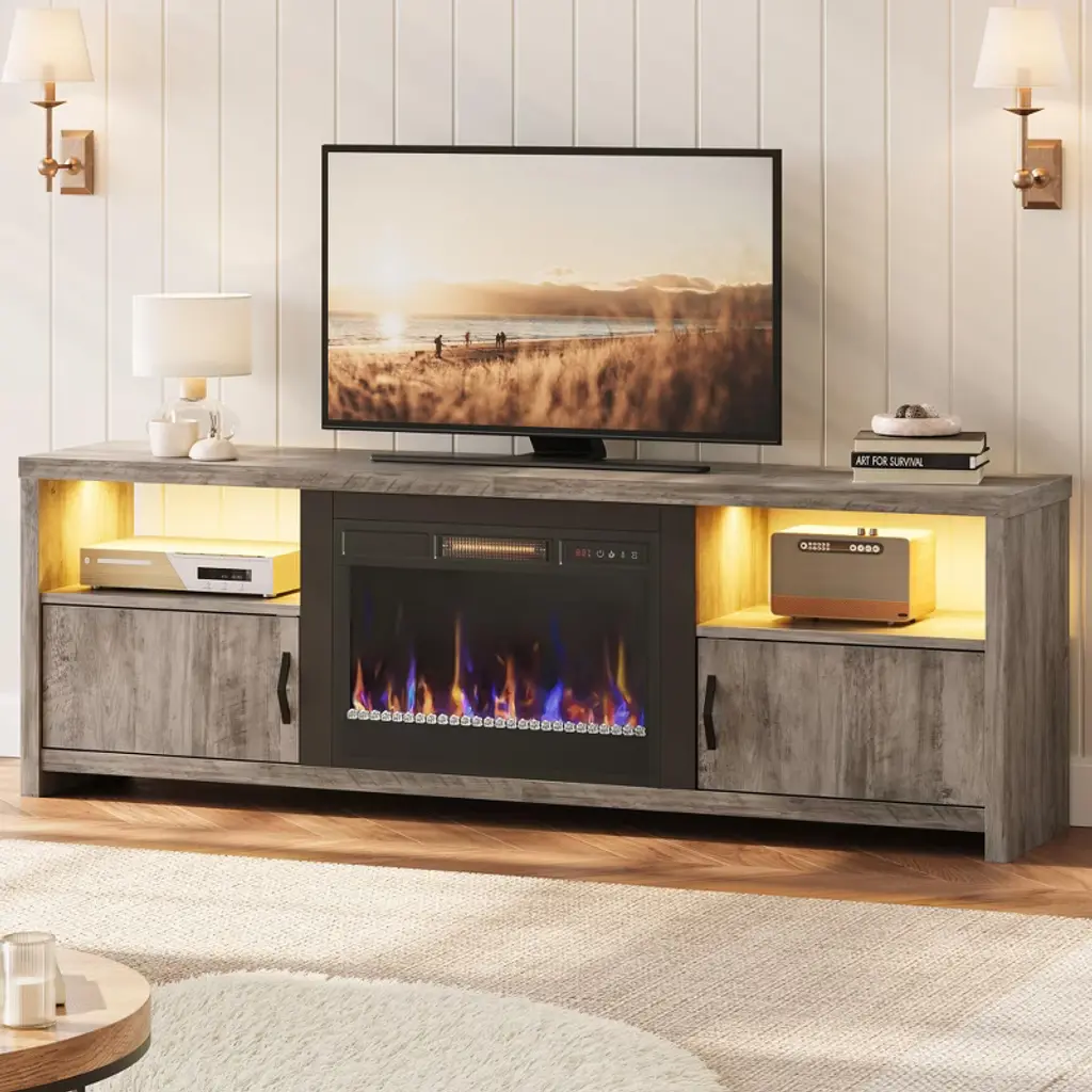 Bestier 71" Fireplace Tv Stand For Tvs Up To 75", Led Entertainment Center Tv Console With 23" Remote Control Electric Fireplace & Storage, Wash Gray