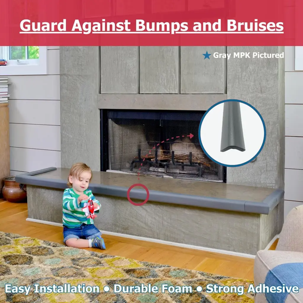Keep your little one safe with our Fireplace Protectors for Children. This 10-foot bumper set covers the entire hearth or fireplace edge, preventing accidental bumps and contact with sharp surfaces. It includes (2) 12" x 12" corner pads and 6 feet of straight padding, all securely attaching to flat, solid surfaces with strong double-backed adhesive. The thick foam is flame-resistant, latex-free, and phthalate-free, offering superior protection. Easy to install and stylish, it ensures peace of mind for families with young children. Available in Brown, Gray, and Taupe.