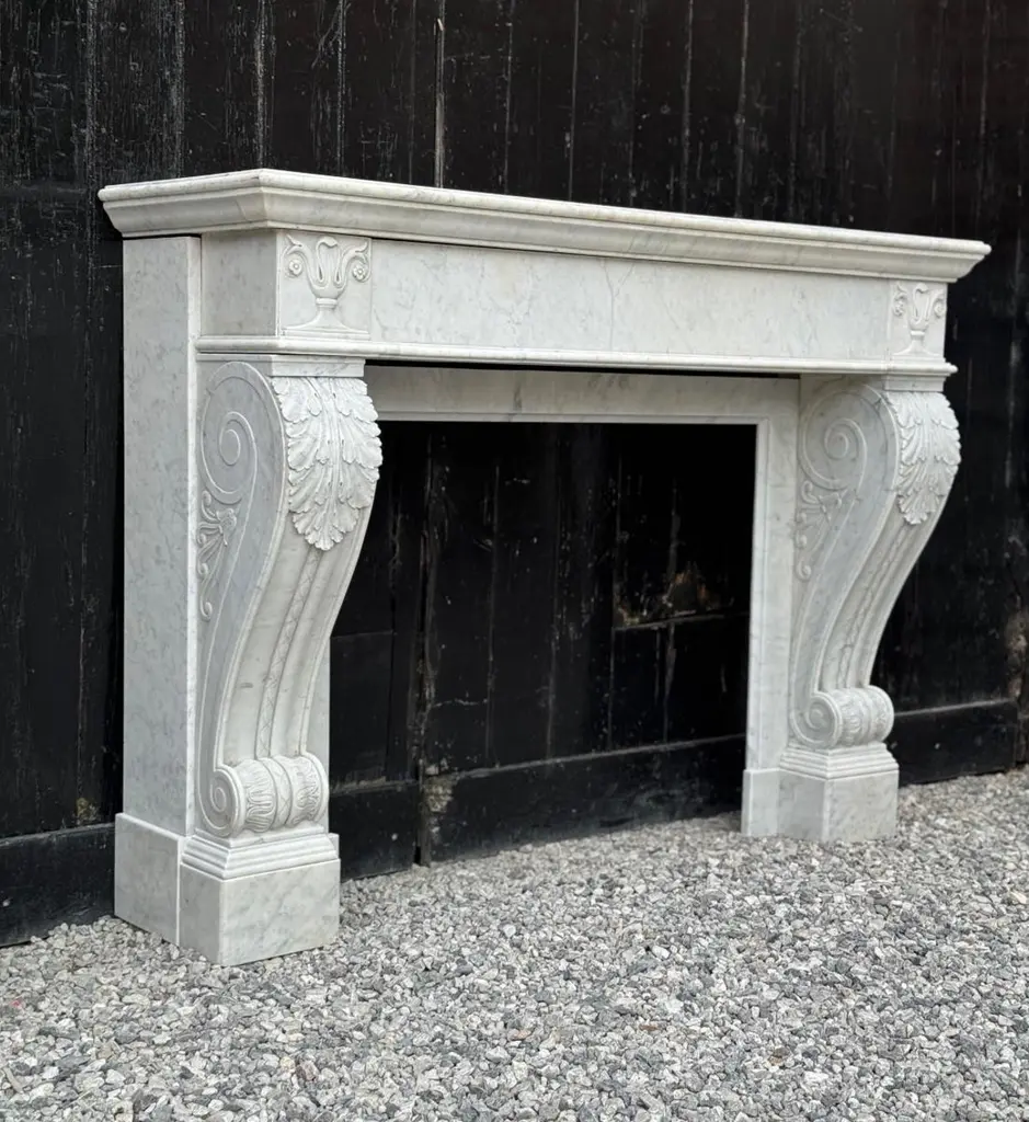 Charles X fireplace in Carrara marble, 19th centuryDimensions of the fireplace: 75,5 x 91,5cm