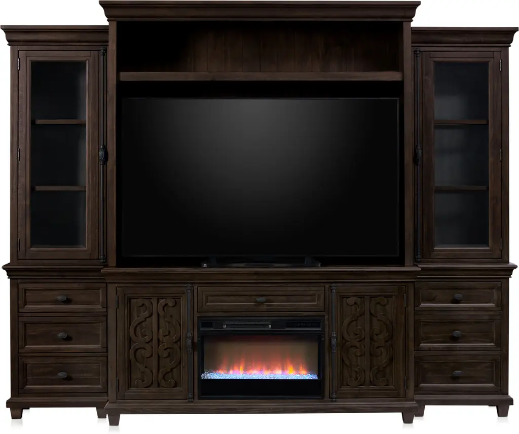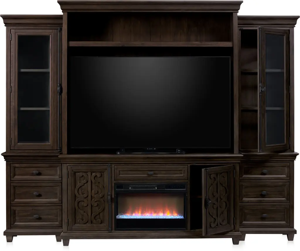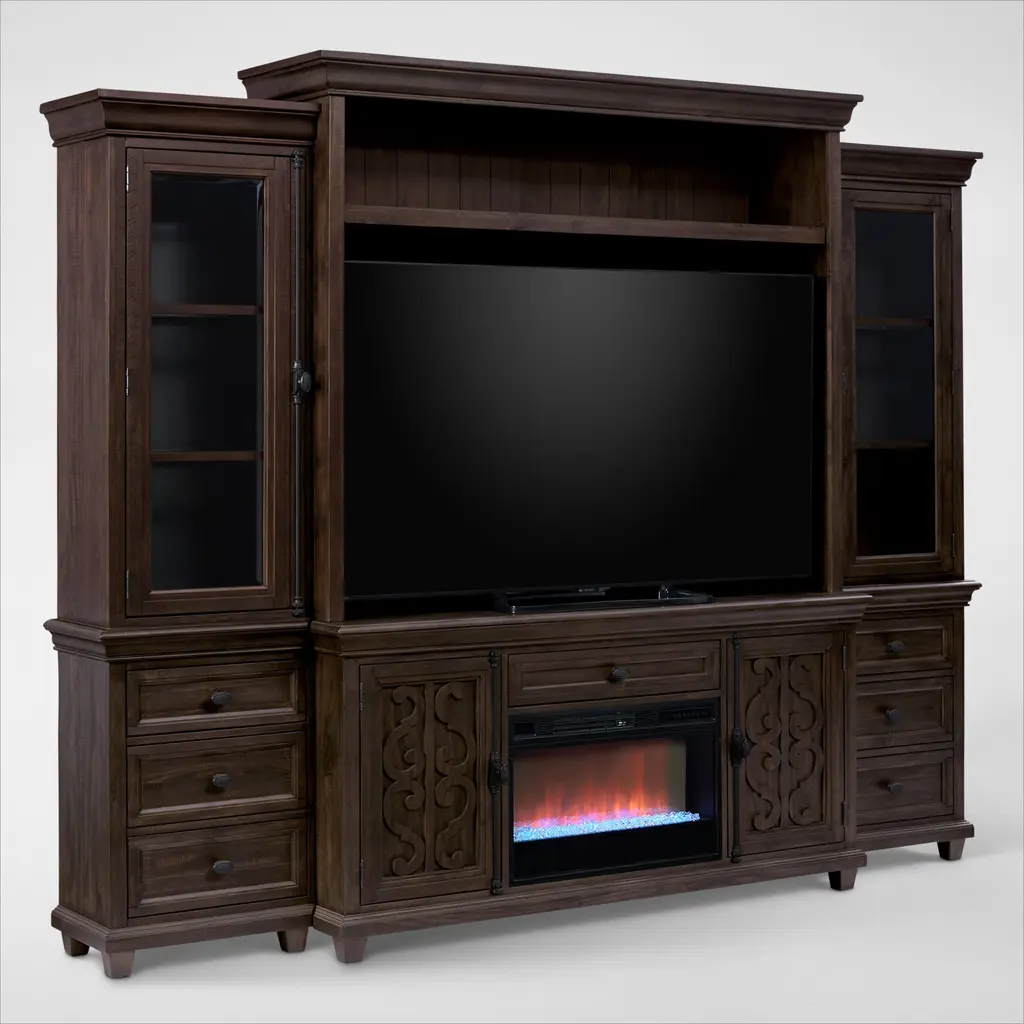 The Charthouse Fireplace Entertainment Wall is the perfect mix of style and quality. Solid craftsmanship, intricate details and added extras make it perfect for organizing media (or clutter).