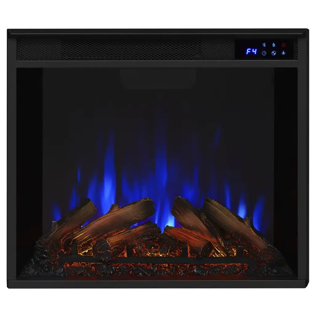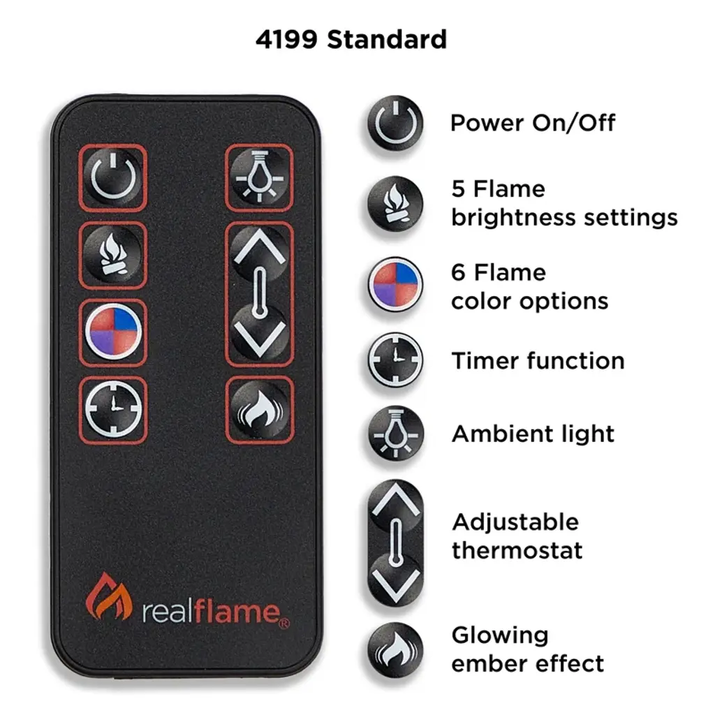 The product has a classic style and a clean, streamlined design making it a stunning addition to any room. The product mimics the look of a real fire but does not require a chimney or vents and plugs into a standard outlet for a convenient setup. Features include infrared LED technology, sleek touch controls, and dynamic glowing embers. Due to differences in monitor resolution, items may look different on screen than in person.