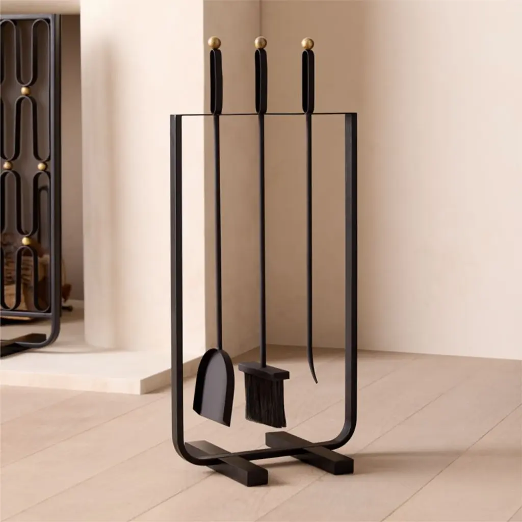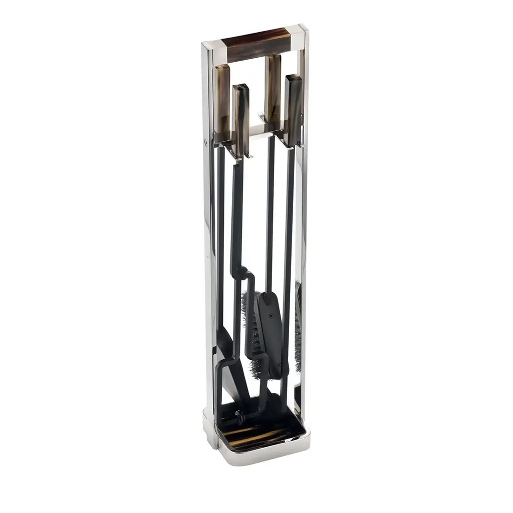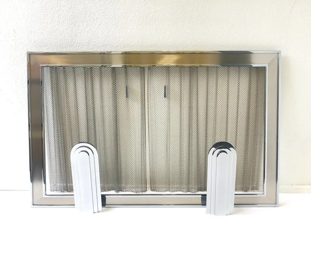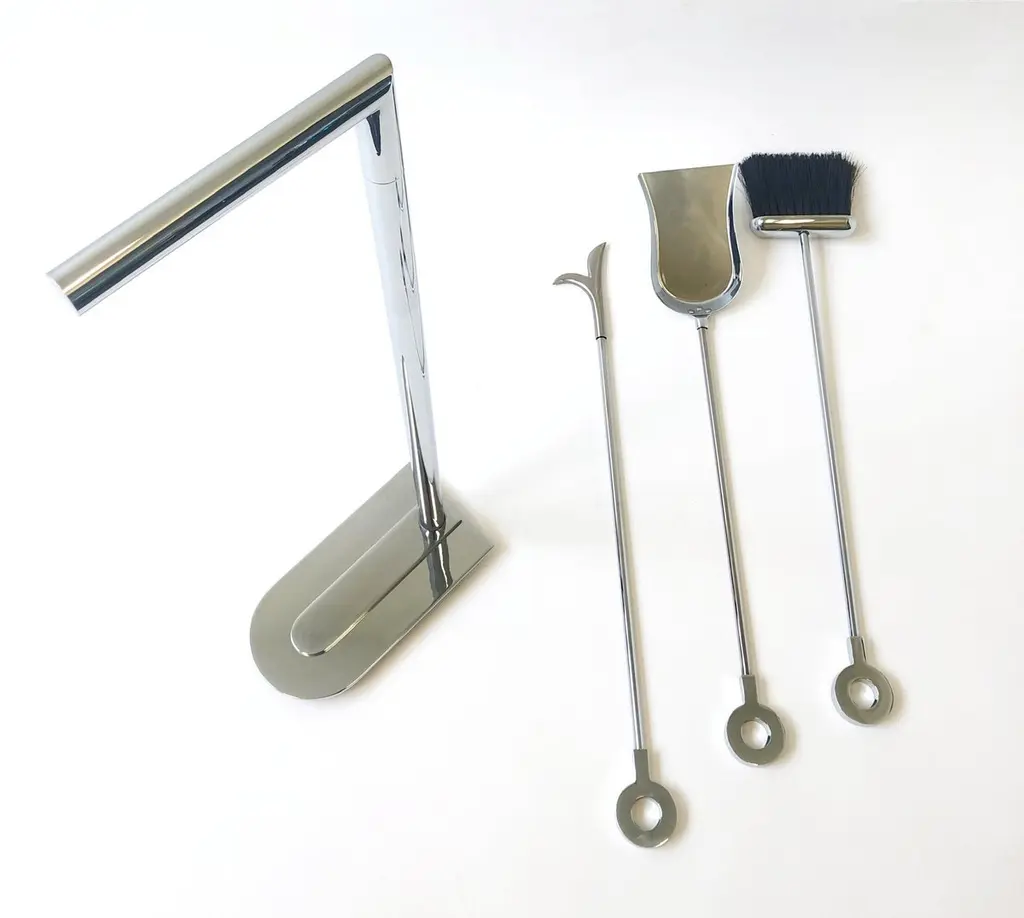 Chrome Fireplace Tool, Andirons And Fire-Screen By Maison Charles