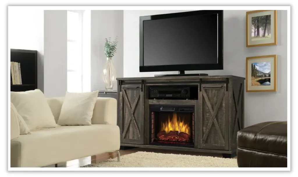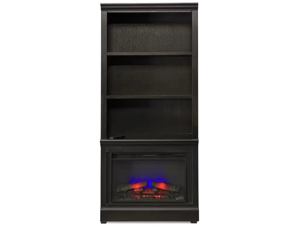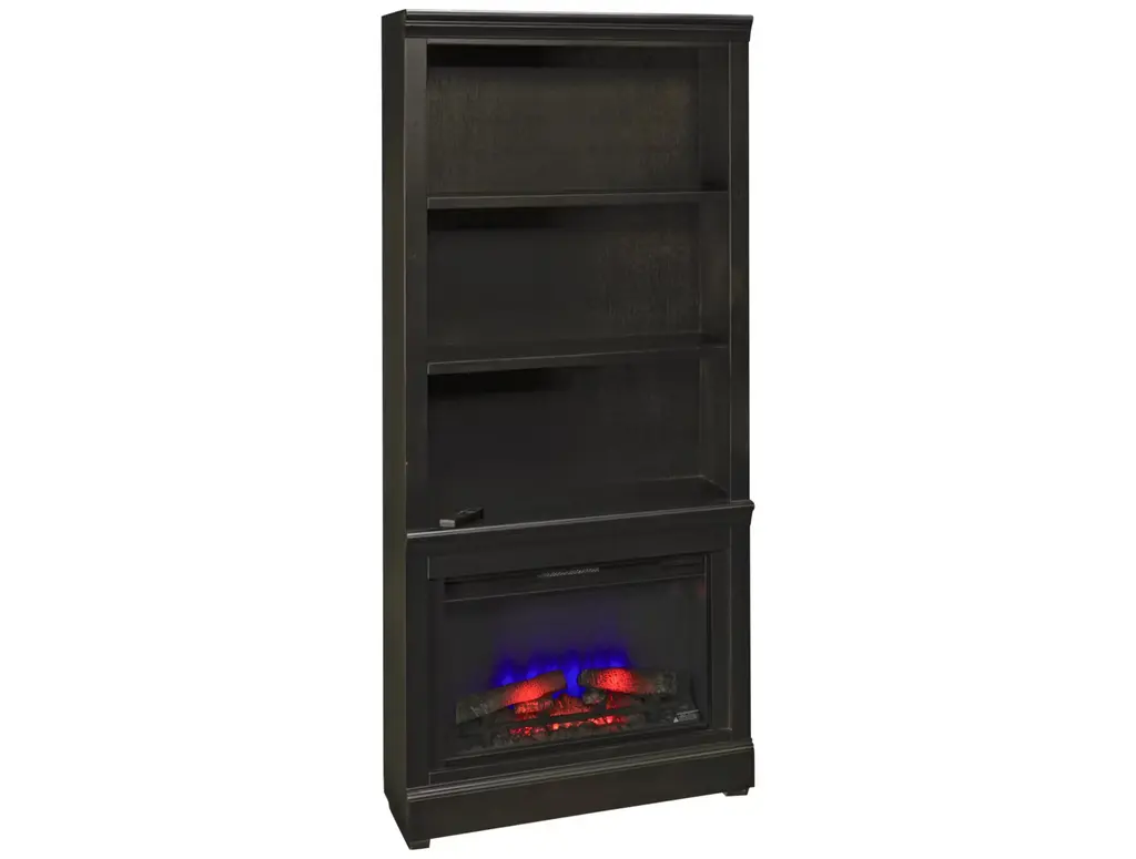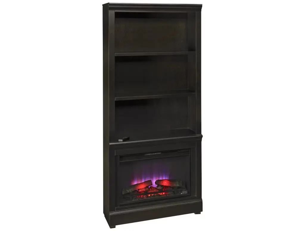 Add warm ambiance and storage to your living space with the Aspen Churchill 72" Fireplace Display Case. Featuring three shelves, it offers plenty of space for your favorite books, framed photos, and more. The classic detailing and rich finish enhance the overall look. The bottom fireplace features five flame settings, and operates with or without heat. Tall and minimalistic, this transitional fireplace display case is designed to fit seamlessly into any interior.