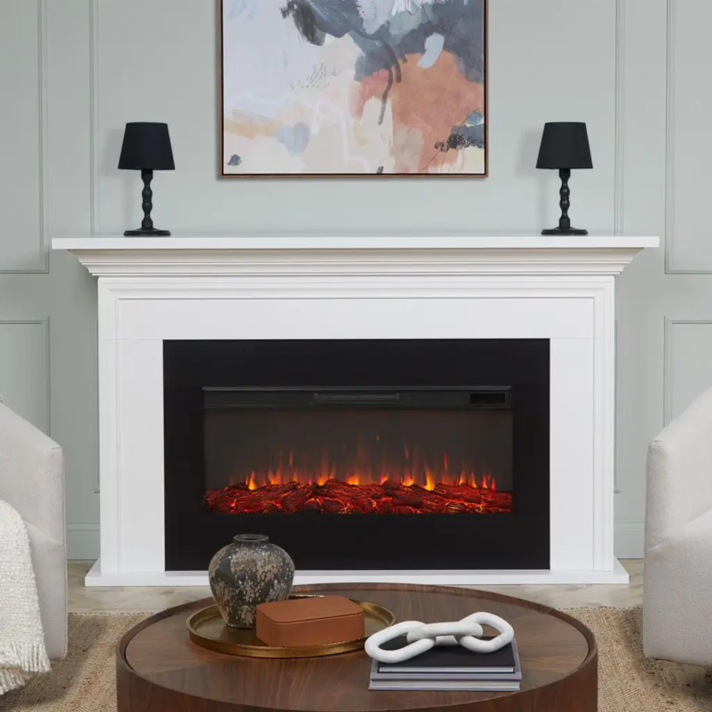Cleo Landscape Electric Fireplace In White By Real Flame
