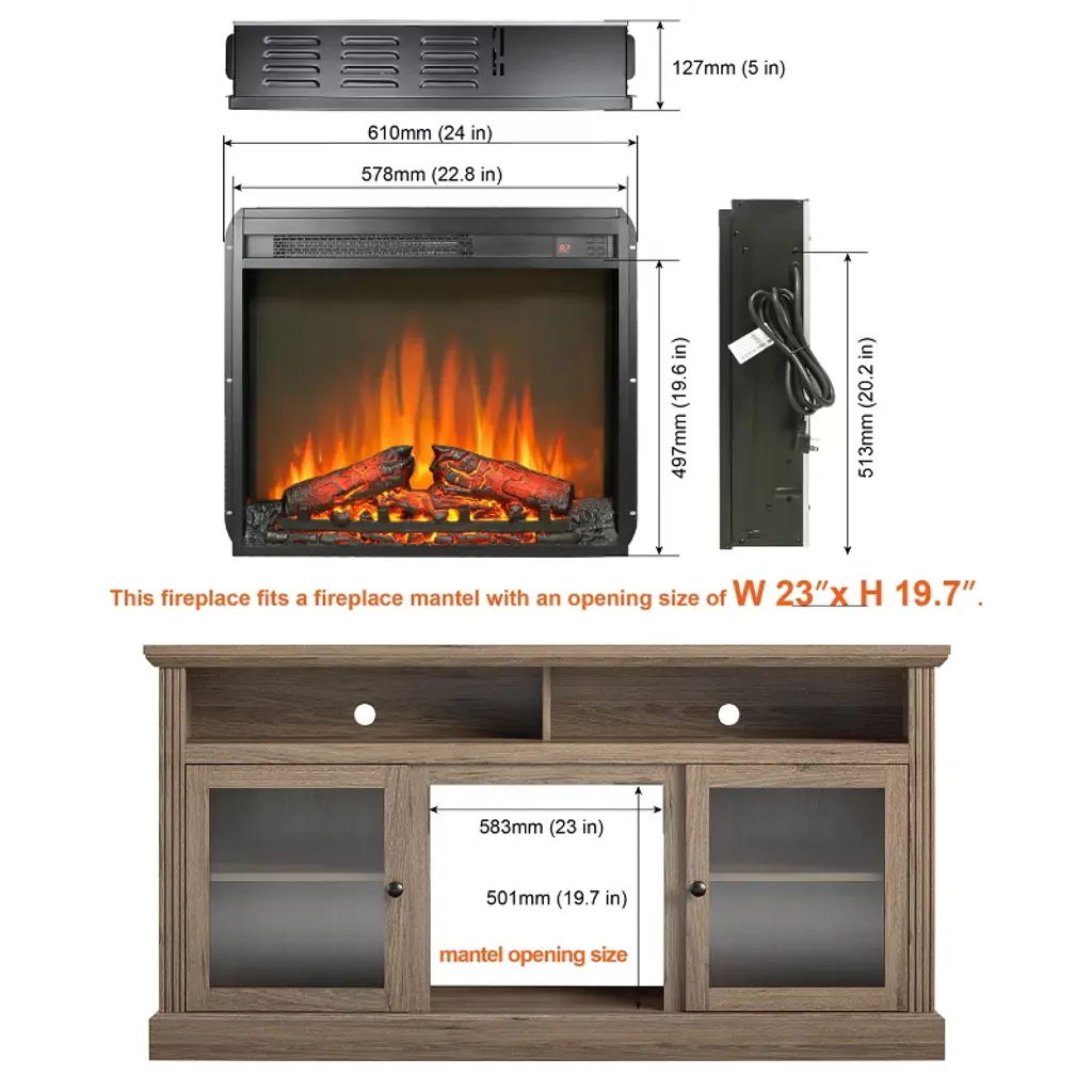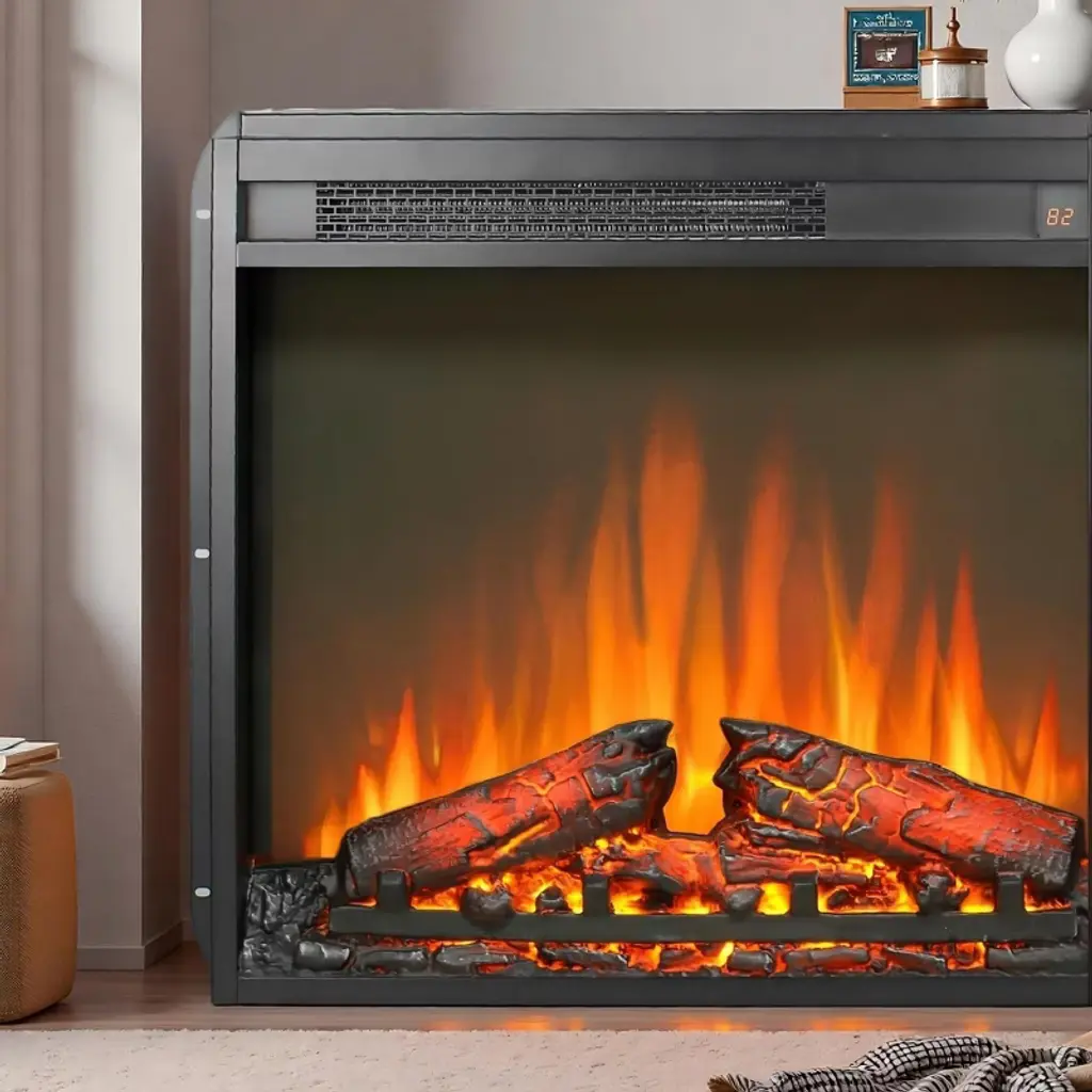 Clihome 23 In. Ultra Thin Electric Fireplace Insert With Log Set And Realistic Flame