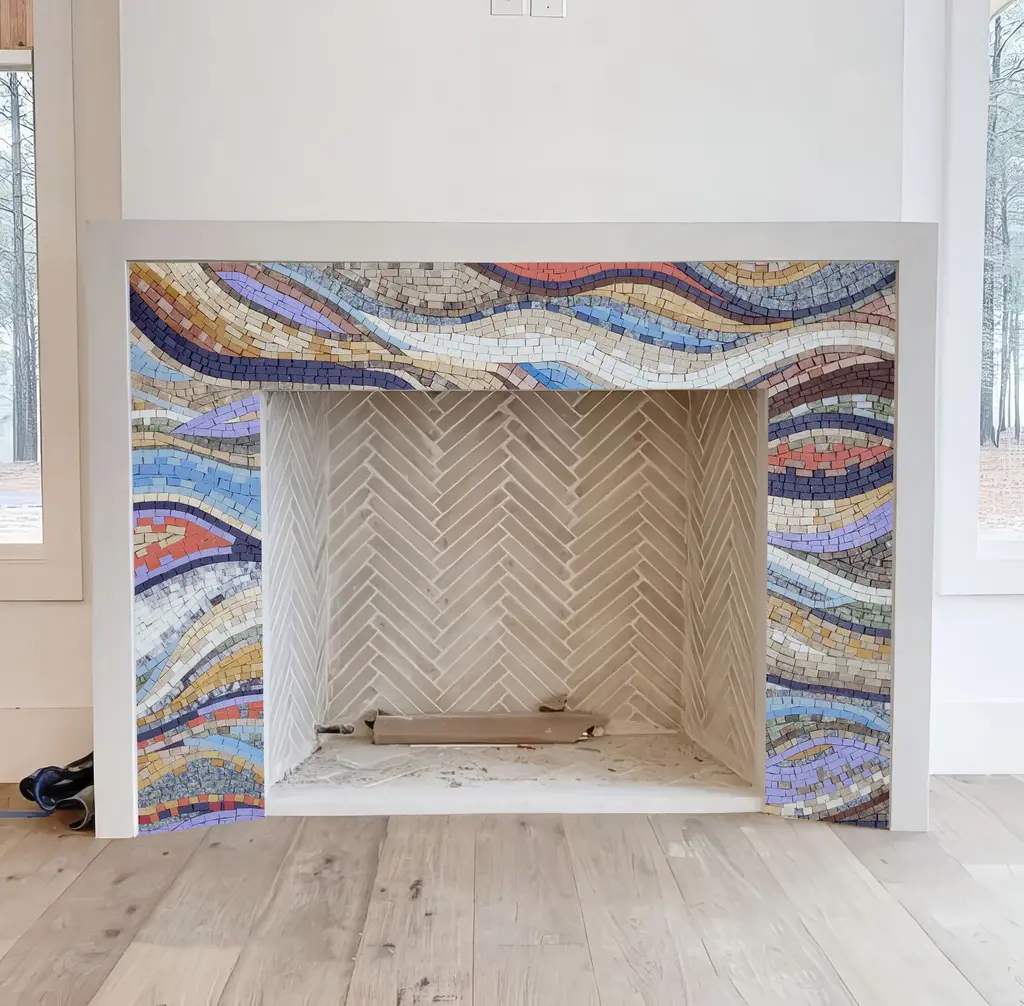 Colorful Pastel Waves Tile Mosaic Fireplace - Mantel