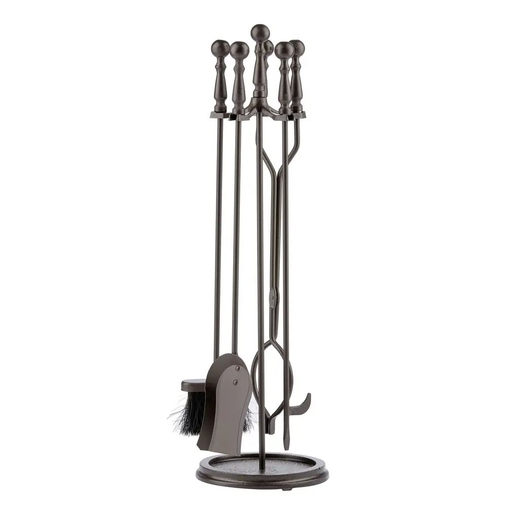 Crook-Handled 5-Piece Fireplace Tool Set