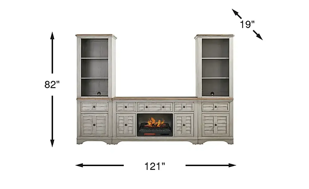 Edisto Bay Gray 3 Pc Wall Unit With 64 In. Console And Electric Log Fireplace