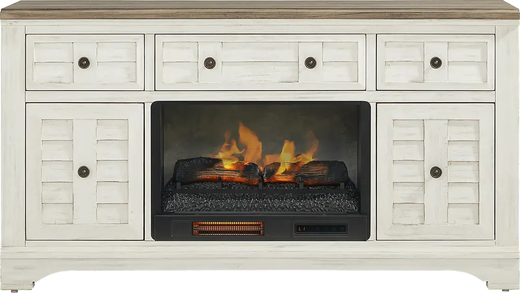 Edisto Bay Gray 64 In. Console With Electric Log Fireplace