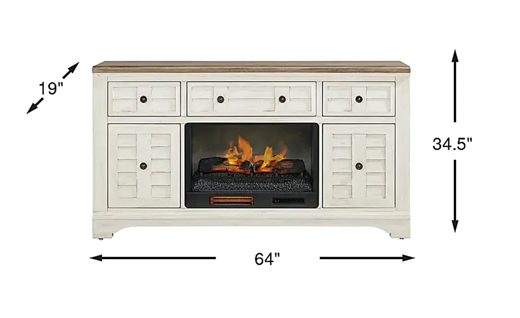 Edisto Bay White 64 In. Console With Electric Log Fireplace