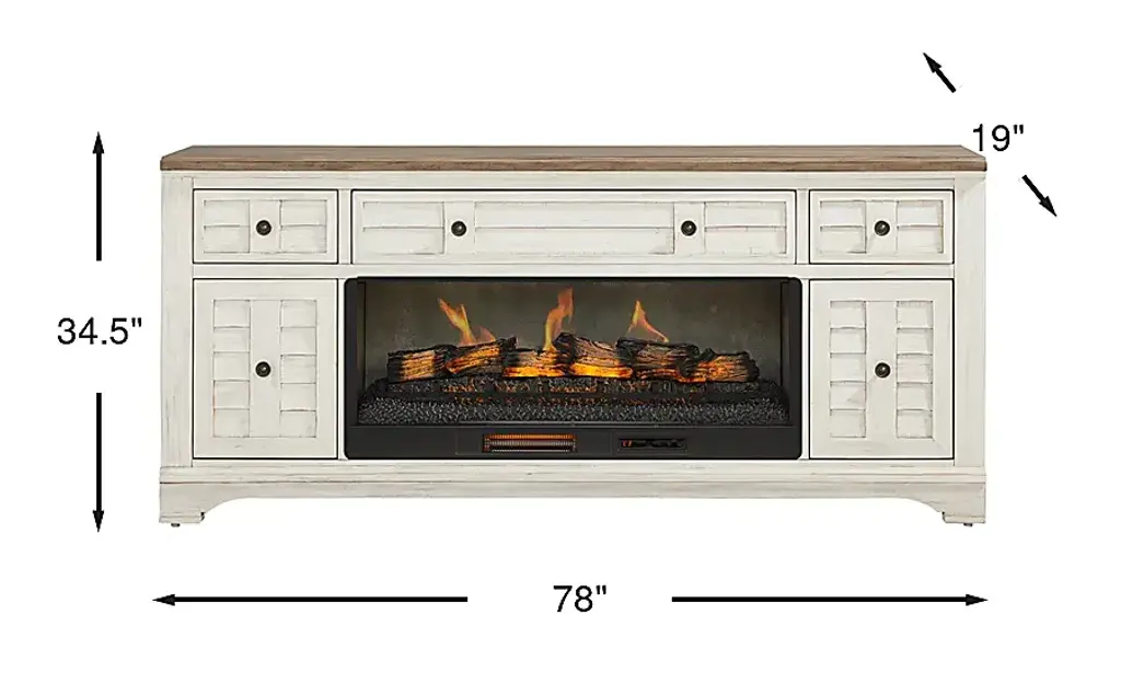 Edisto Bay White 78 In. Console With Electric Log Fireplace
