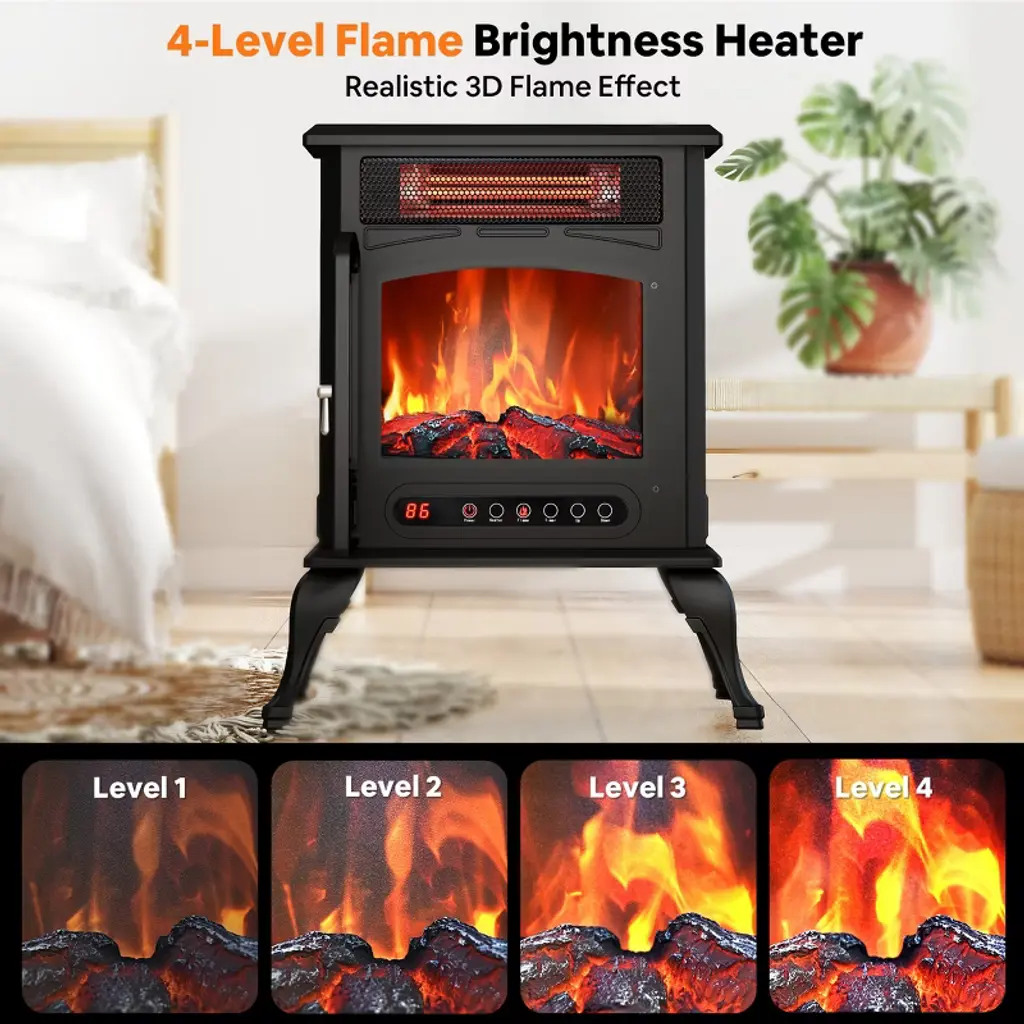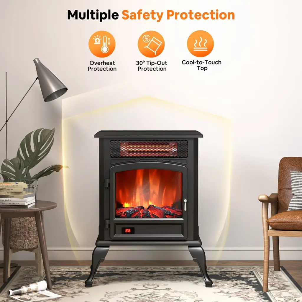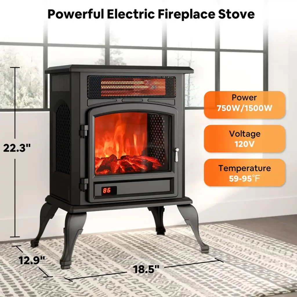 Create a cozy atmosphere and stay warm with Etust electric fireplace heater. The lifelike 3D flame effect with 4 brightness levels adds style to any room, while dual heat settings (750W/1500W) and an adjustable thermostat (59℉–95℉) keep you comfortable year-round. Set your ideal schedule with the 1–12 hour timer and control it easily by front panel. Safety comes first with overheat protection, tip-over shutoff, and a cool-touch top—making it a worry-free choice for families with kids or pets. Perfect for the living room, bedroom, office, or study, this fireplace blends decorative charm with reliable heating performance. Temperature Range:59℉-95℉ Heating Modes:750W/1500W Dimension:18.5" x 12.9" x 22.3" Weight:12.1lbs