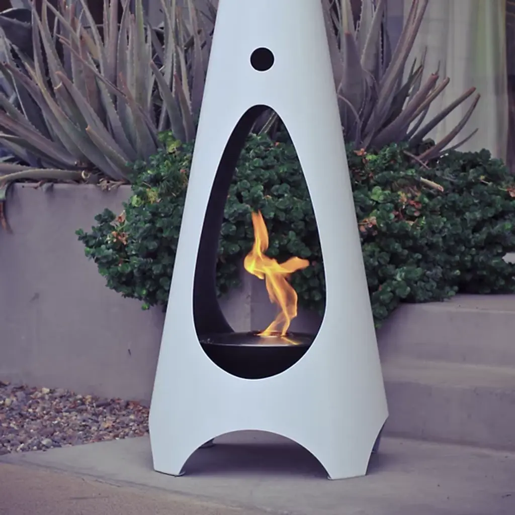 Give award-winning heat and radiance to interiors with the subtle, retro appeal of the Hausfire Indoor/Outdoor Ethanol Fireplace from Modfire. Handcrafted and portable, its conical form is fashioned from strong 14 gauge stainless steel, rising from four legs, and with a teardrop-shaped cutaway in its conical body to reveal the heating element and channel warm air. It can burn for 9 hours, while the burner rests at the center of a round fire bowl, able to be filled with any aggregate material you would like to place inside it, adding an element of customization to the retro refinement.