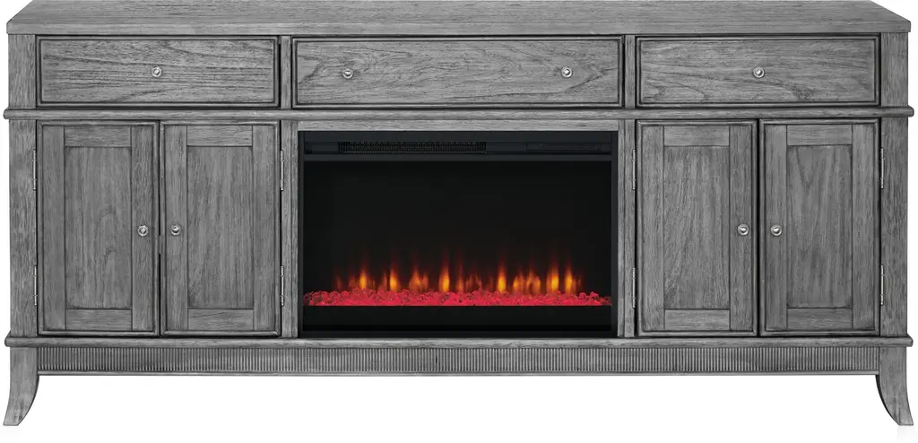 Hazel 74" Tv Stand With Contemporary Fireplace - Gray