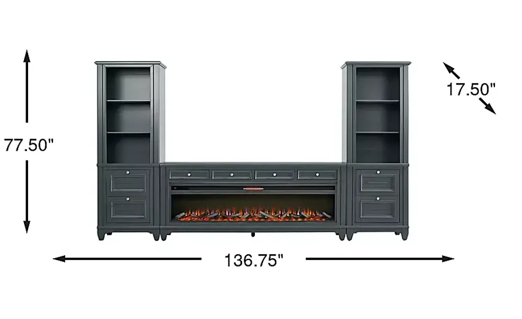 Hilton Head Graphite 4 Pc Wall Unit With 80 In. Console And Electric Log Fireplace