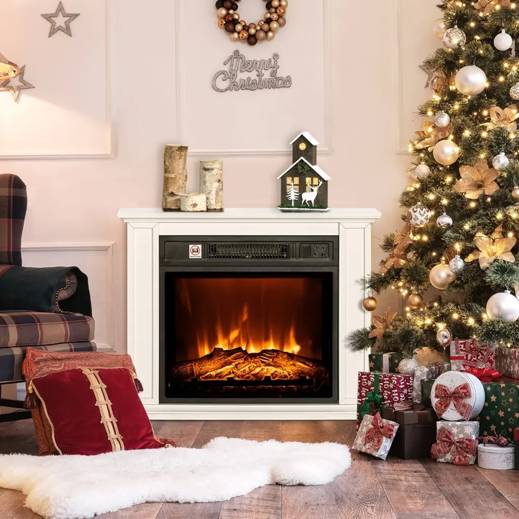 Experience cozy warmth with the HOMCOM electric fireplace heater. This chic faux fireplace features a realistic 3D flame effect with three intensity settings, letting you enjoy its ambiance year-round with or without heat. Adjust the temperature from 62℉ to 82℉ to suit your comfort and transform your space into a tranquil retreat.