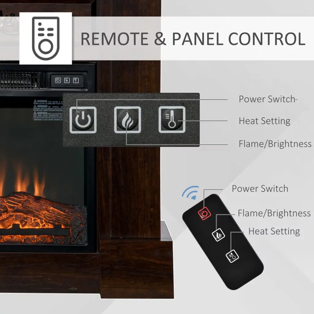 Homcom 32" Electric Fireplace With Mantel, Freestanding Heater With Led Log Flame, Overheat Protection And Remote Control, 1400w, Brown